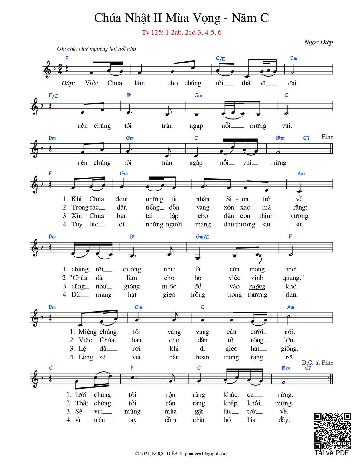 Sheet PDF with the same name Thánh Vịnh 125, Chúa Nhật 2C Mùa Vọng: