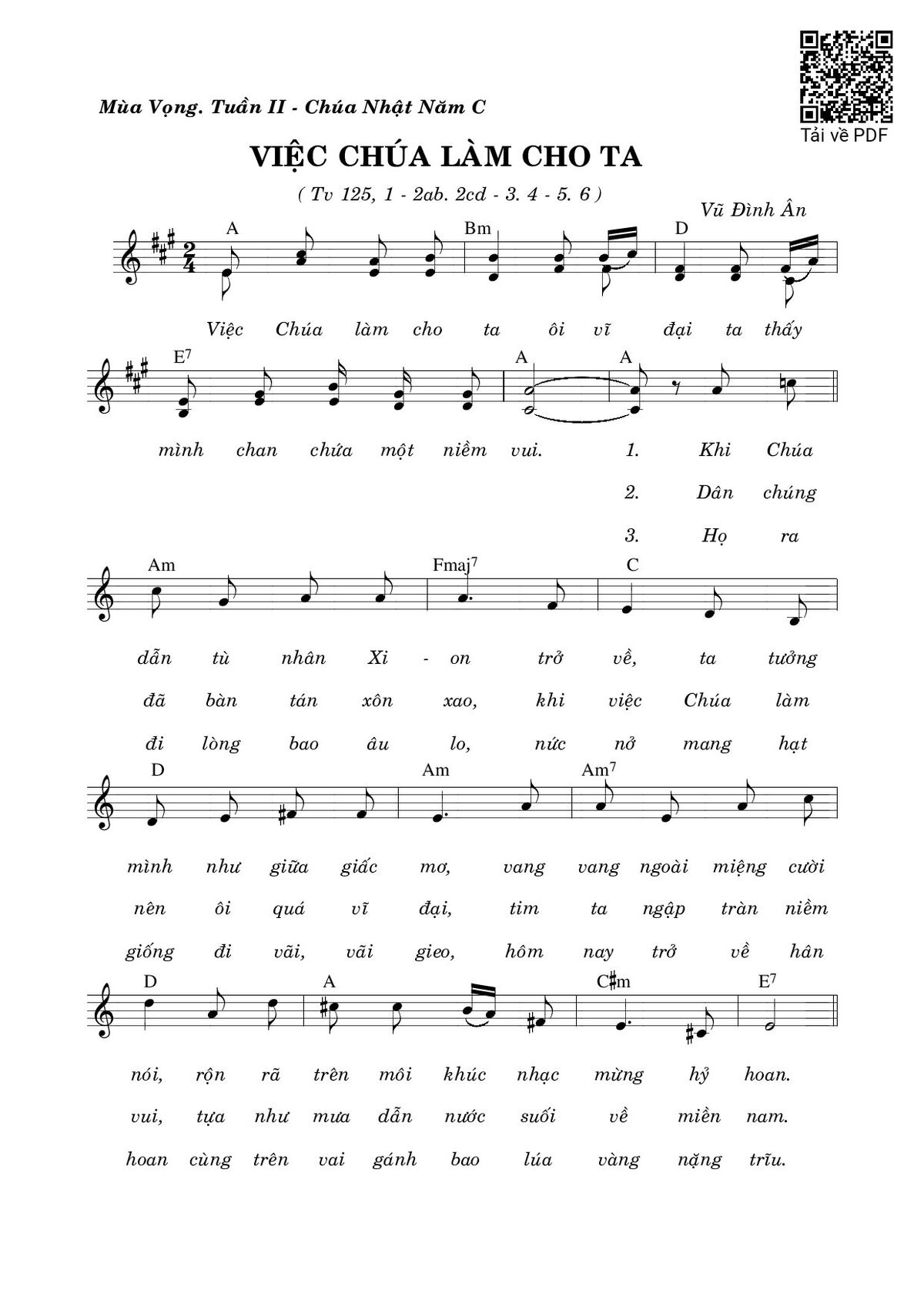 Vũ Đình Ân Chúa Nhật C Mùa Vọng Việc Chúa làm cho ta ôi vĩ đại [PDF] [Sheet] [Lyrics] [Mp4/Midi]