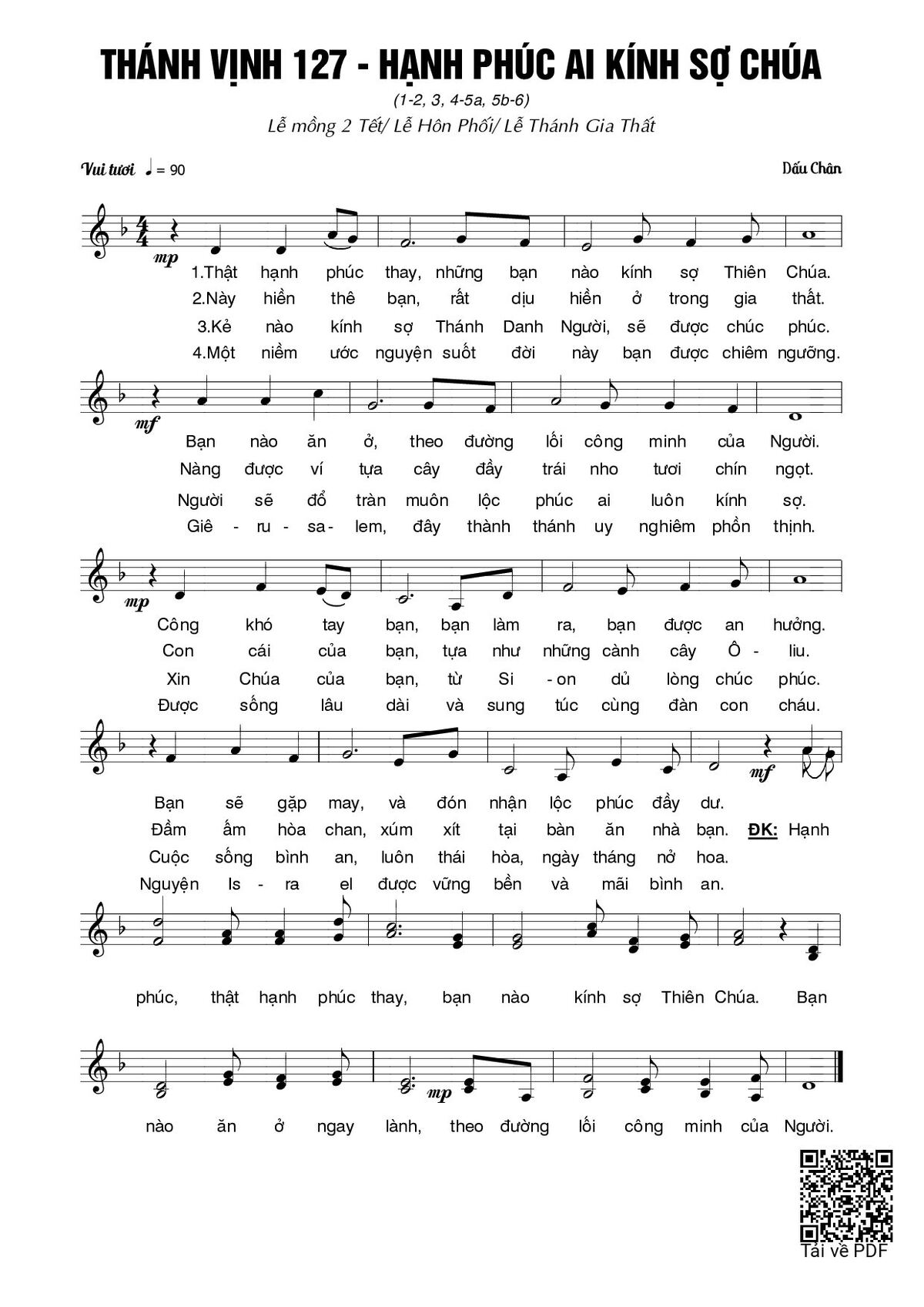 More similar sheets PDF Hạnh phúc ai kính sợ Chúa (Thánh Vịnh 127):