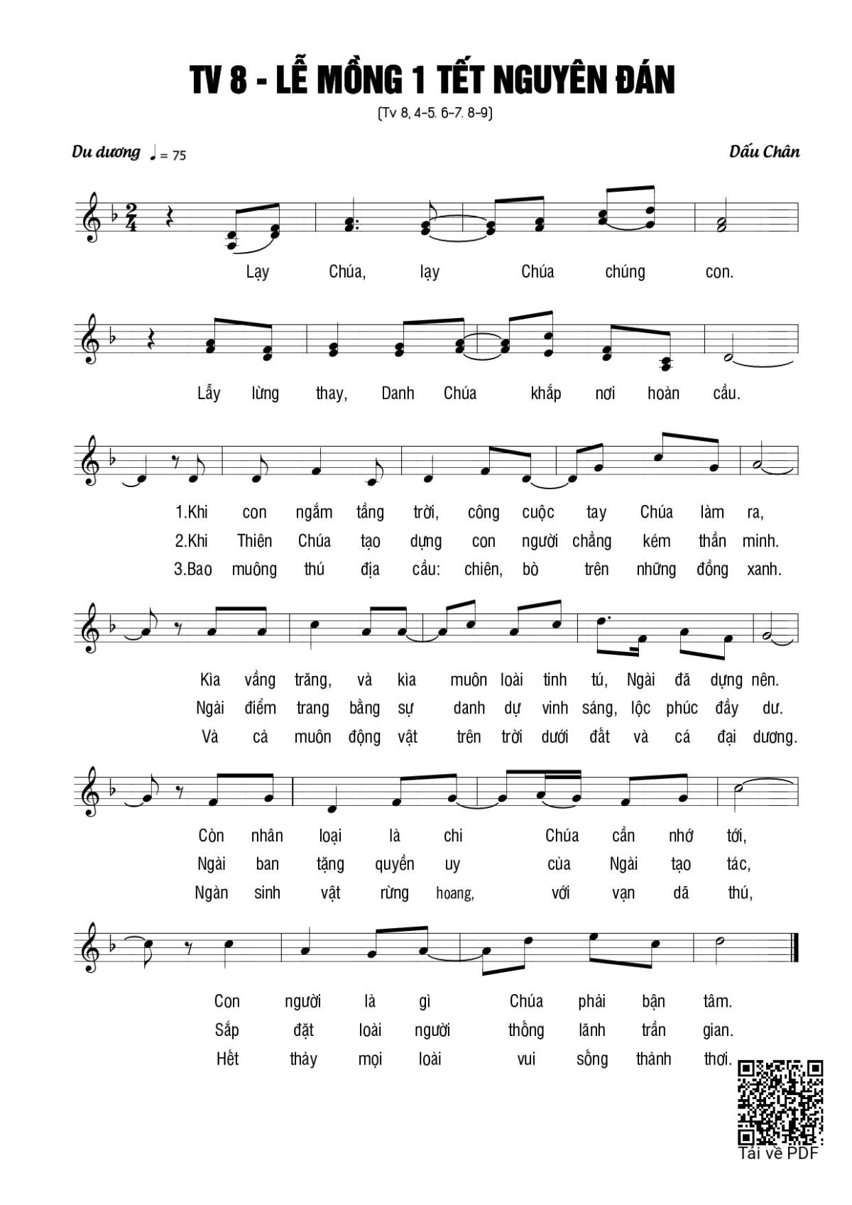 Page 1 of Sheet music PDF Lễ Mồng 1 Tết Nguyên Đán (Thánh Vịnh 8) - Dấu Chân