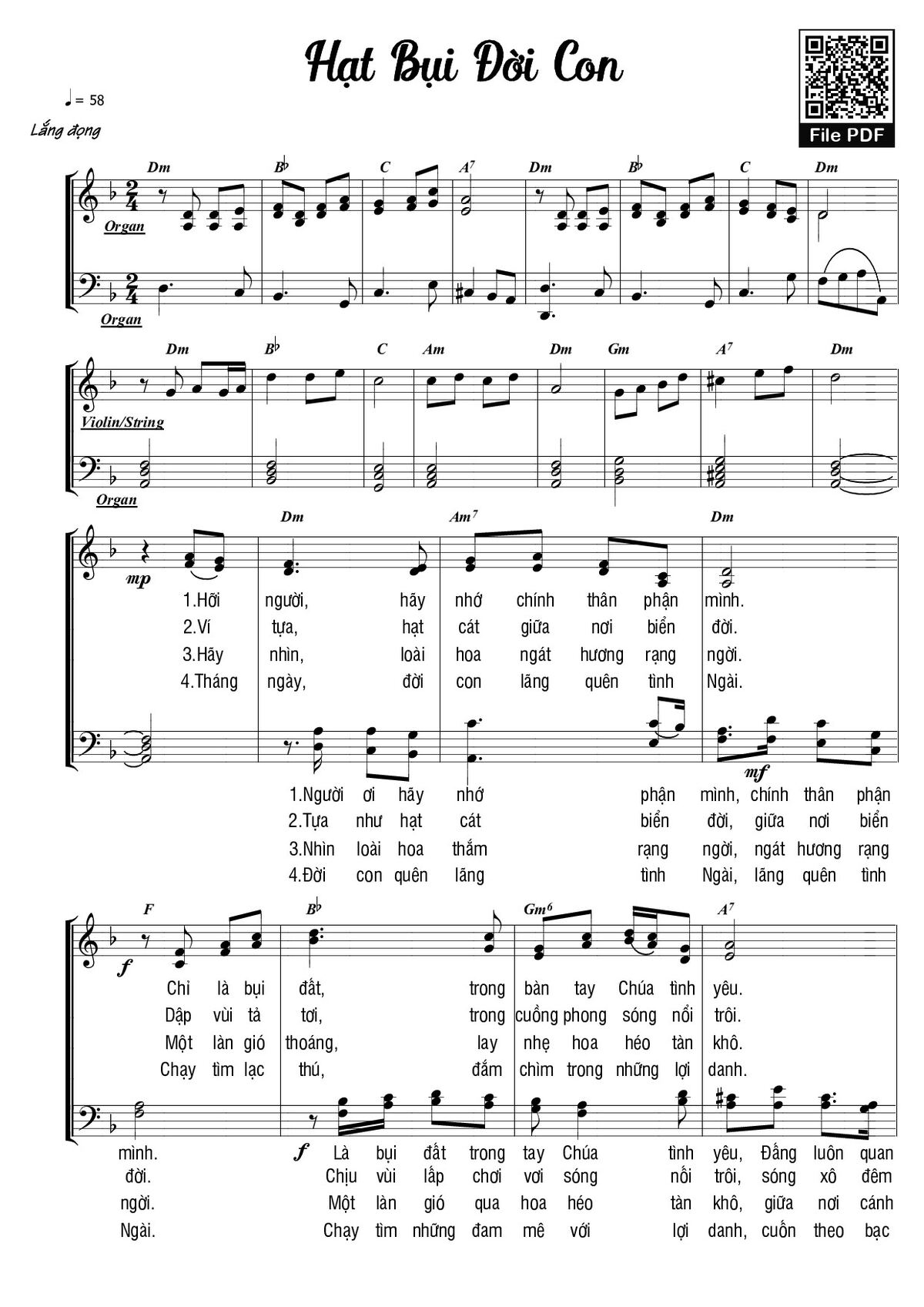 Sheet music Hạt bụi đời con (4 bè) by Dấu Chân and PDF file was posted here to support you to practice singing perfectly. Sheets with notes and chords are for reference only, for non-commercial purposes only, not involved with earning money by buying and selling. Copyright is belong to song writer/author and copyright owner. Truongca.com do not own any copyrighted content. You can download the high-quality PDF files which contain staffs by PDF link above.