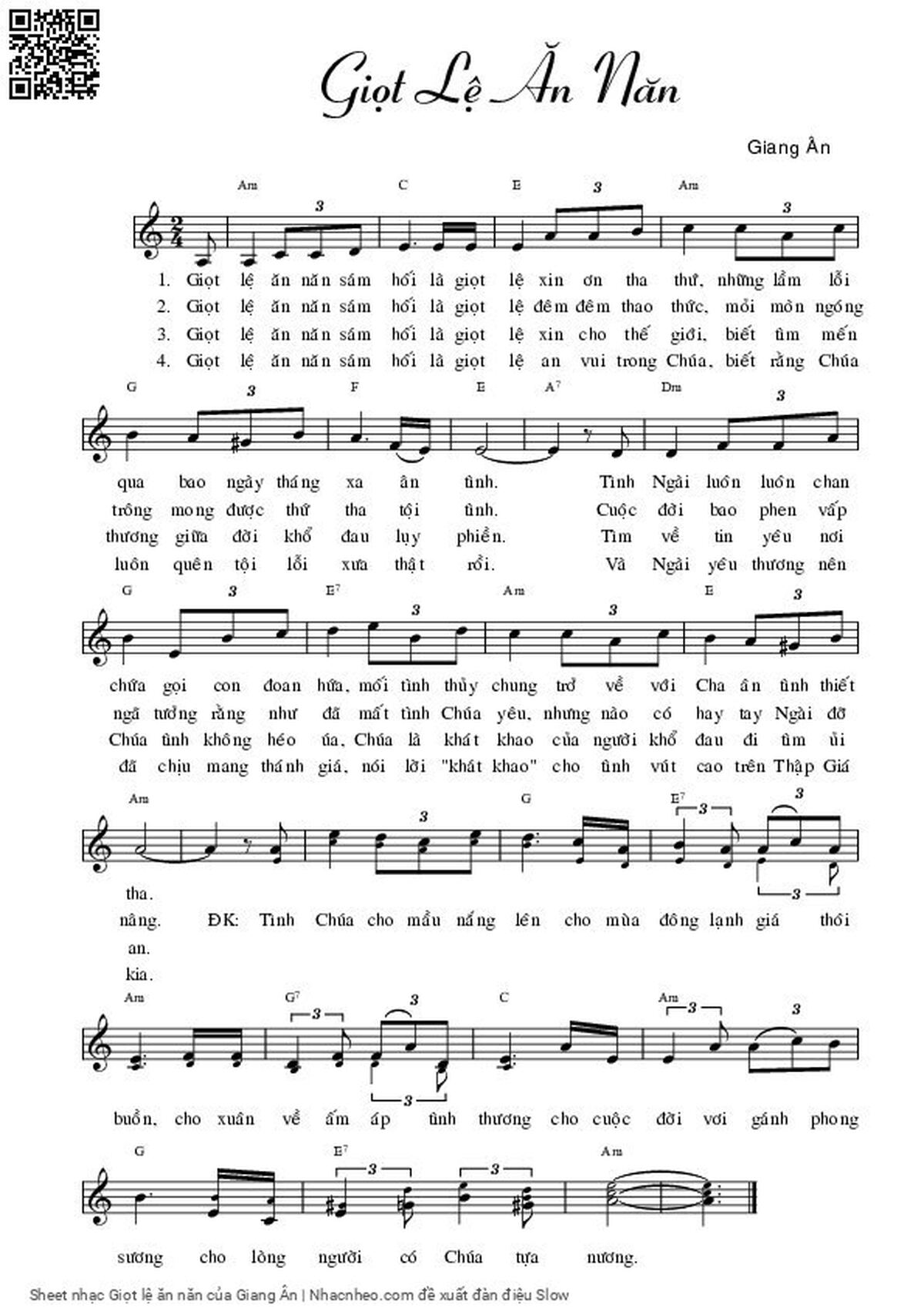 Giang Ân Giọt lệ ăn năn sám hối Là giọt lệ xin ơn tha thứ [PDF] [Sheet] [Lyrics] [Mp4/Midi]