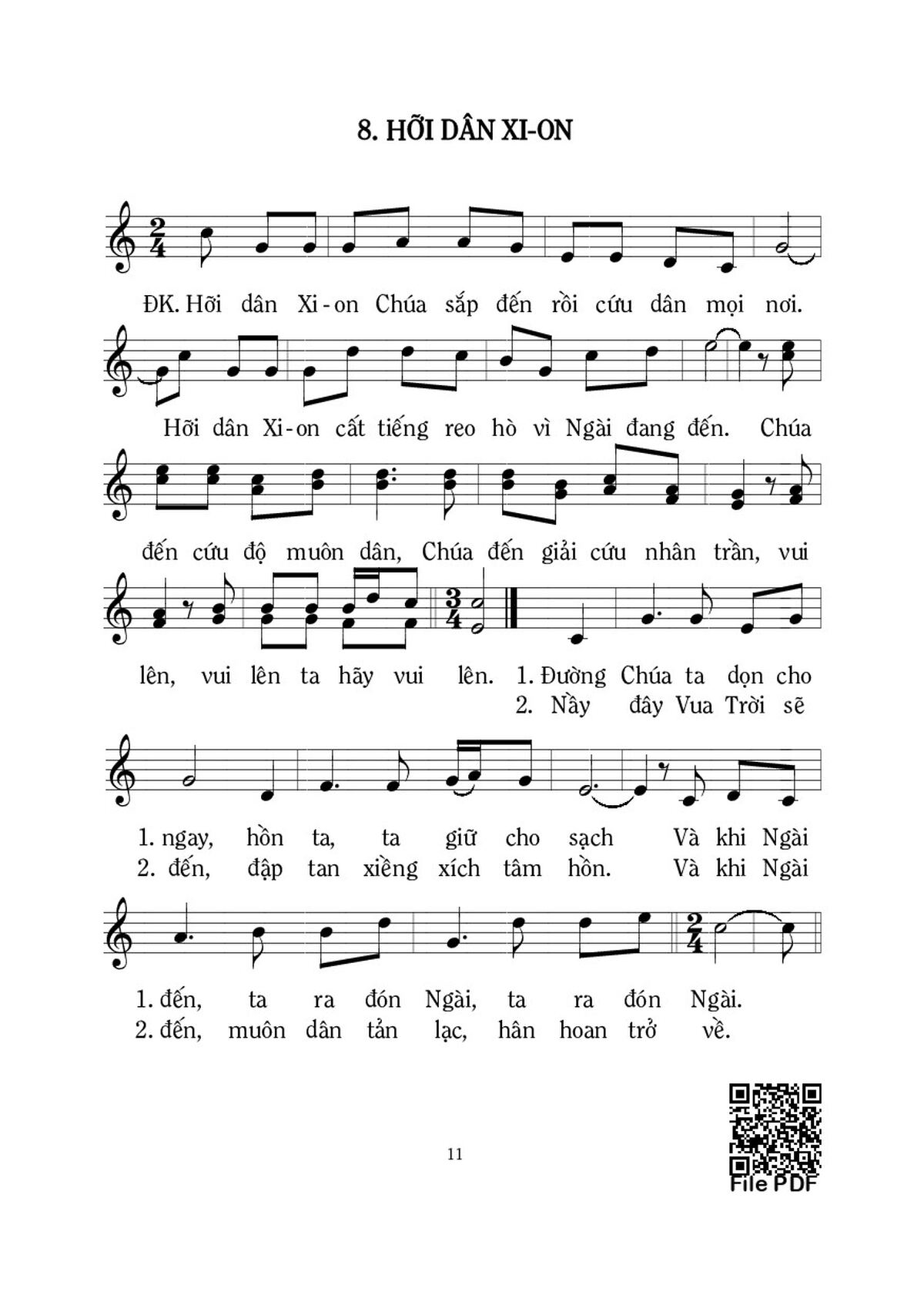 Điệp khúc.- Hỡi dân Xi-on Chúa sắp đến rồi cứu dân mọi nơi. Hỡi dân Xi-on cất tiếng reo hò vì Ngài đang đến. Chúa đến cứu độ muôn dân, Chúa đến giải cứu nhân trần, vui lên, vui lên ta hãy vui lên.