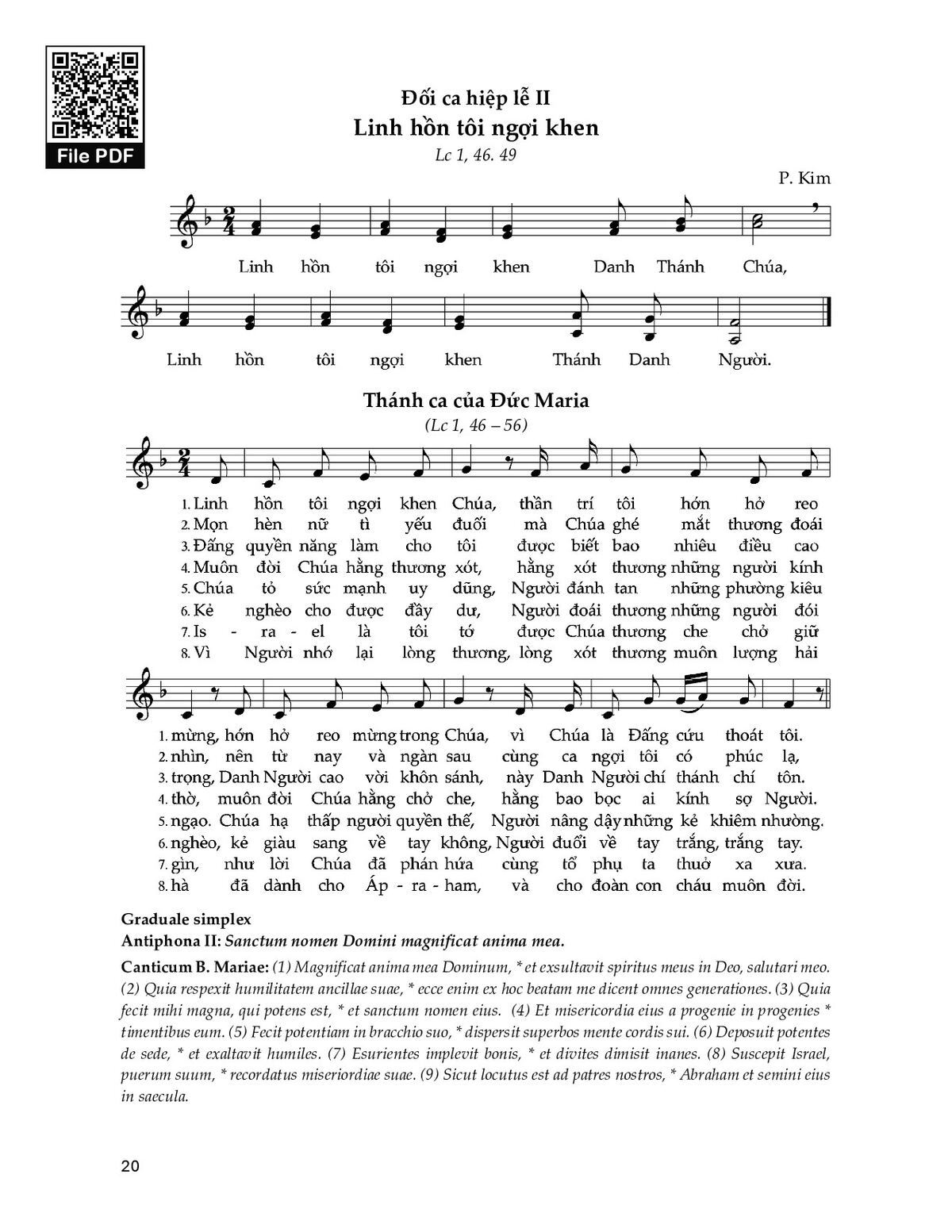 Đáp ca: Linh hồn tôi ngợi khen Danh Thánh Chúa. Linh hồn tôi ngợi khen Thánh Danh Người.
