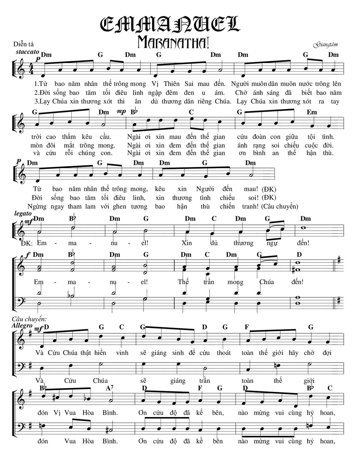 Điệp khúc: Em-ma-nu-el! Xin dủ thương ngự đến! Em-ma-nu-el! Thế trần mong Chúa đến