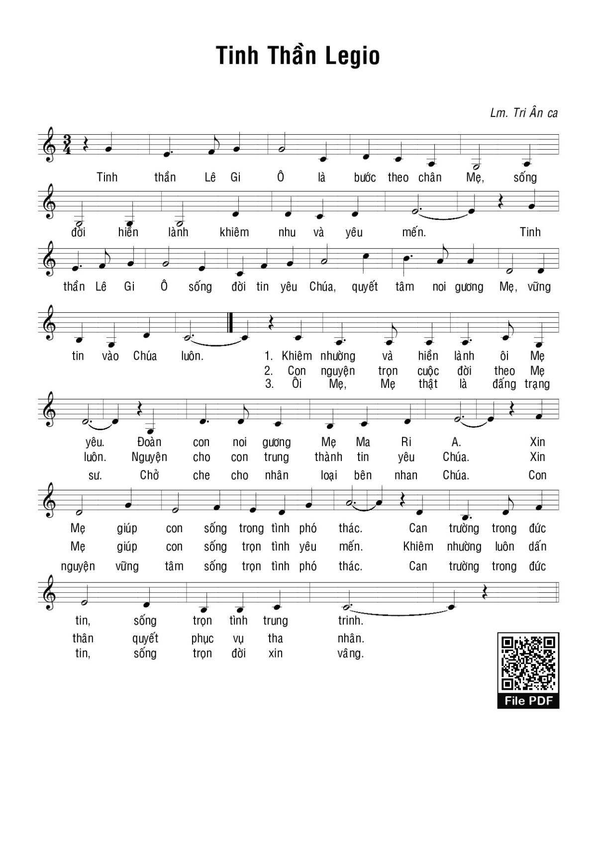 Tinh thần Lêgiô là bước theo chân Mẹ sống đời hiền lành khiêm nhu và yêu mến. Tinh thần Lêgiô sống đời tin yêu Chúa, quyết tâm noi gương Mẹ, vững tin vào Chúa luôn. Khiêm nhường và hiền lành ôi Mẹ yêu.