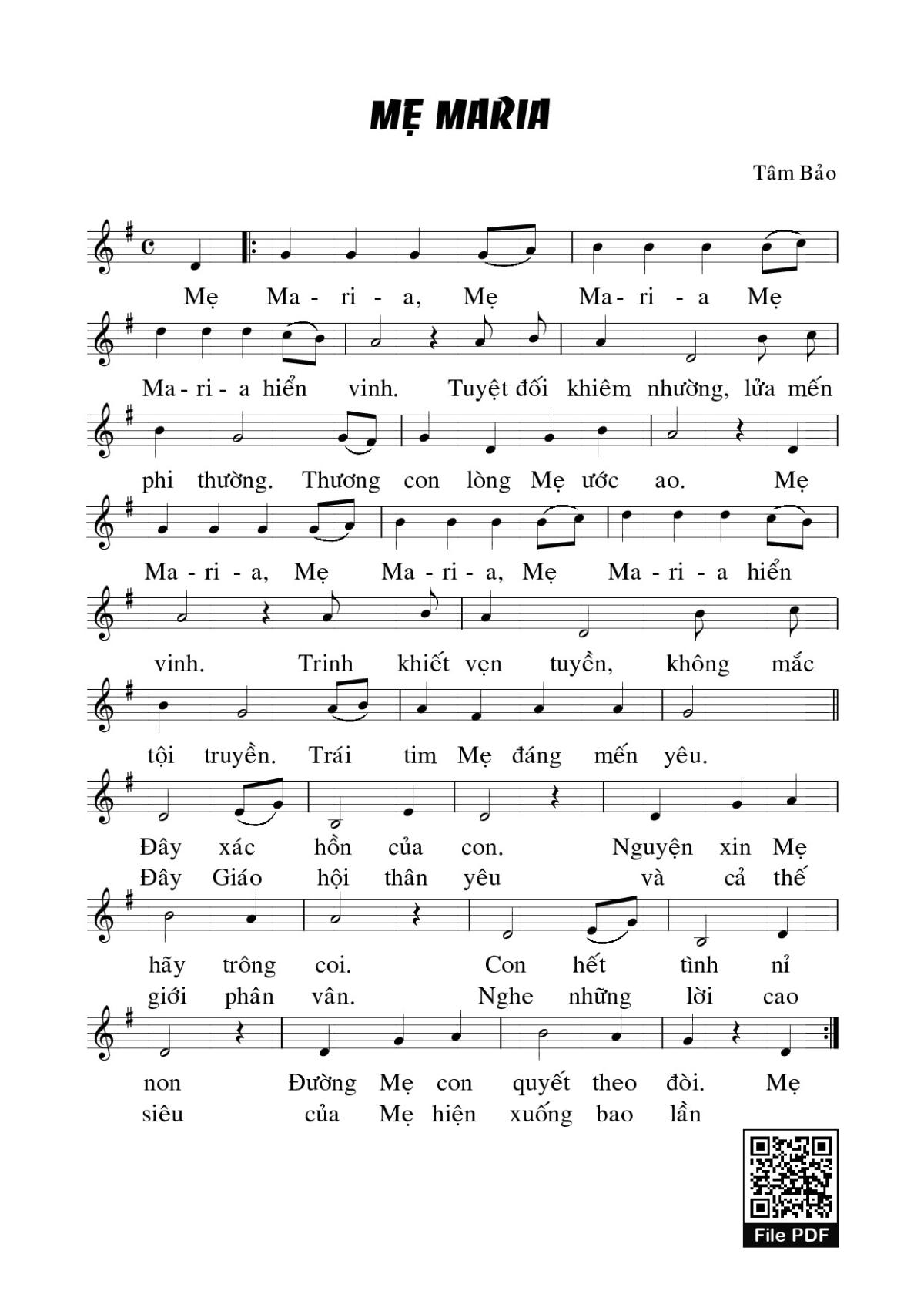 Tâm Bảo Mẹ Maria Mẹ Maria Mẹ Maria hiển vinh Tuyệt đối khiêm nhường [PDF] [Sheet] [Lyrics] [Mp4/Midi]