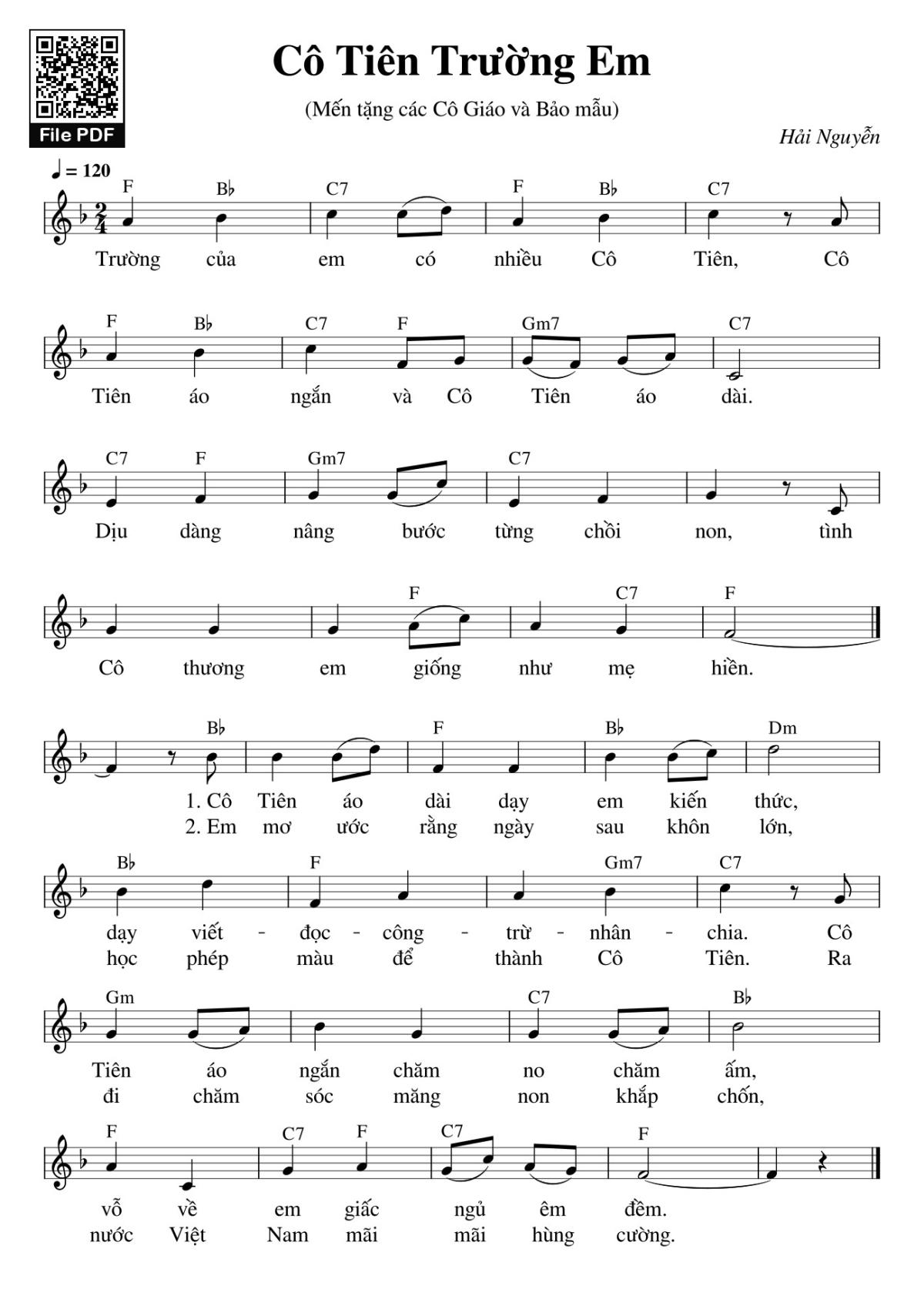 Hải Nguyễn trường của em có nhiều cô tiên [PDF] [Sheet] [Lyrics] [Mp4/Midi]