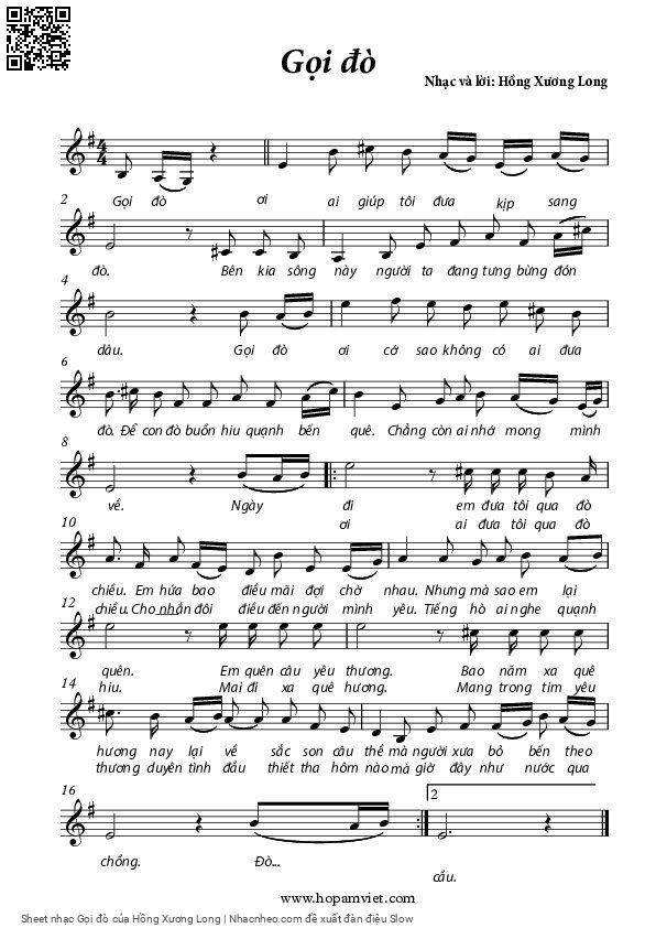 Hồng Xương Long Gọi đò ơi Ai giúp đưa tôi kịp sang đò [PDF] [Sheet] [Lyrics] [Mp4/Midi]