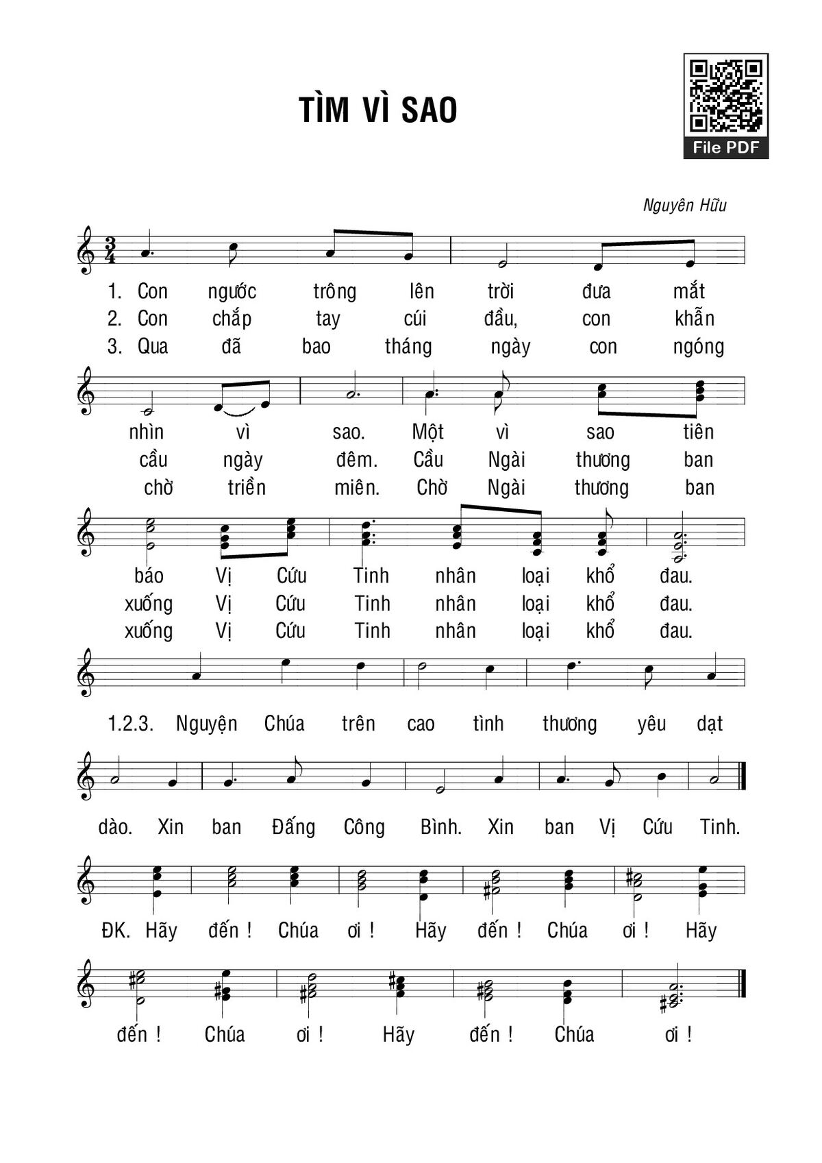 Nguyên Hữu Con ngước trông lên trời đưa mắt tìm vì sao [PDF] [Sheet] [Lyrics] [Mp4/Midi]