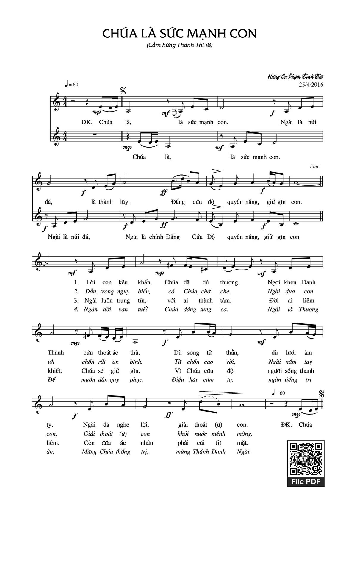 Hưng Ca Phựm Đình Đài Ca Nguyện Hiệp Lễ Chúa là là sức mạnh con [PDF] [Sheet] [Lyrics] [Mp4/Midi]