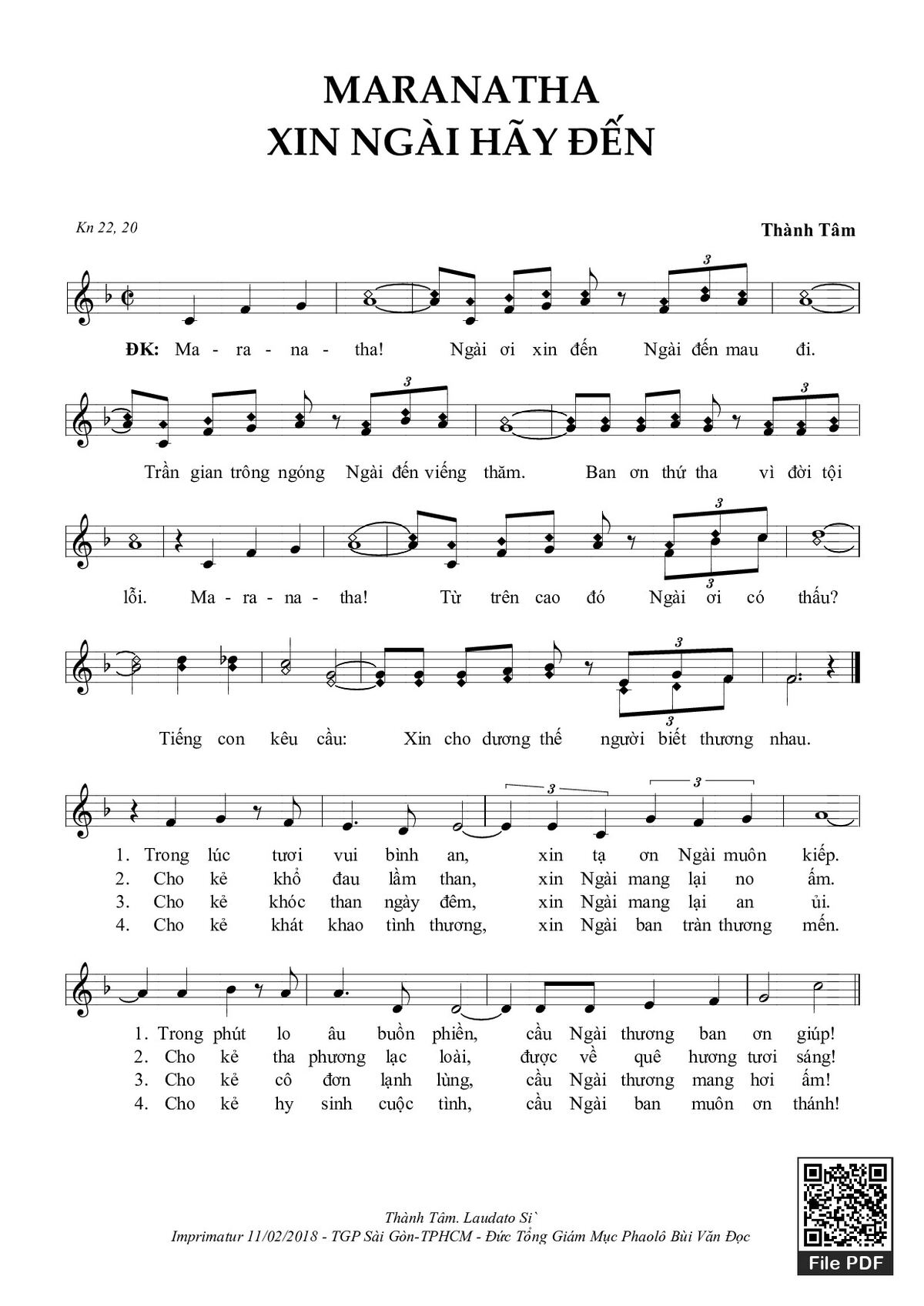 Thành Tâm Maranatha Ngài ơi xin đến Ngài đến mau đi [PDF] [Sheet] [Lyrics] [Mp4/Midi]
