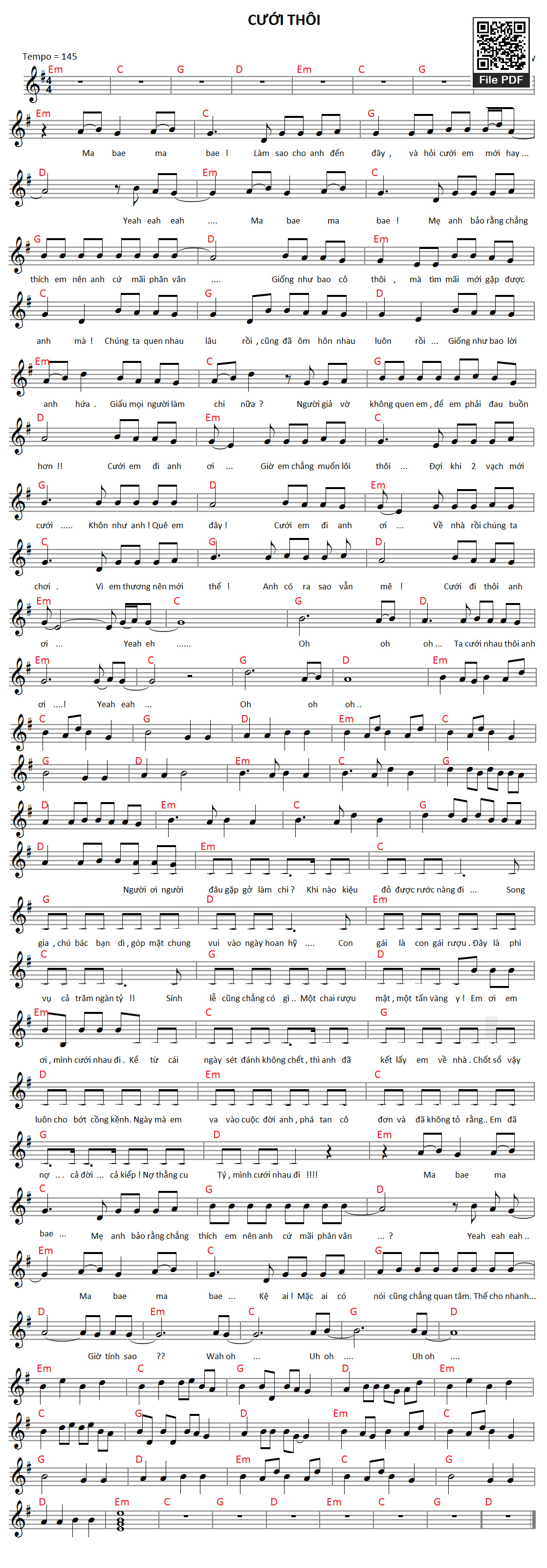 Masew Mae babe mase bae Làm sao cho anh đến đây Và hỏi cưới em luôn mới hay [PDF] [Sheet] [Lyrics] [Mp4/Midi]