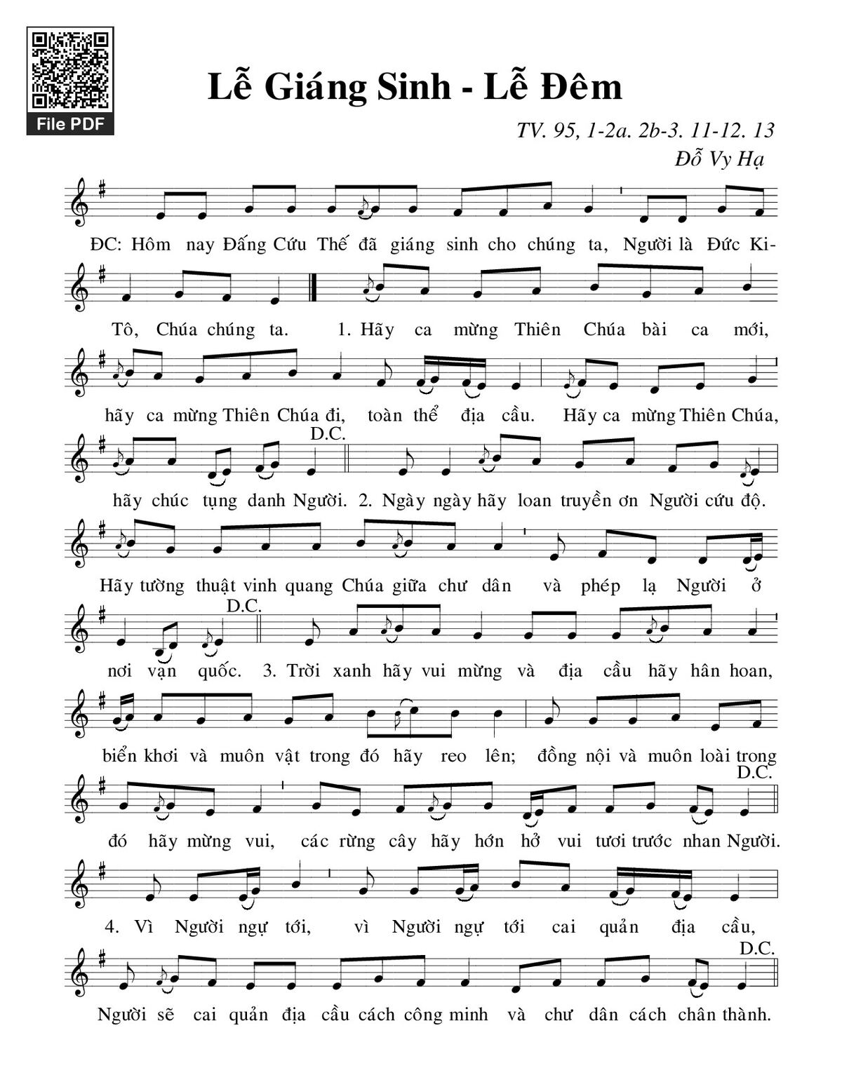 Sheet PDF with the same name Thánh Vịnh 95, Lễ Đêm Giáng Sinh: