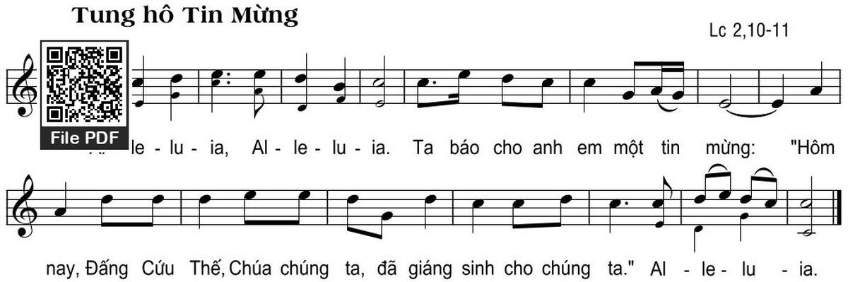 The first sentence: Tung hô Tin Mừng Alleluia Alleluia Ta báo cho anh em một tin mừng Hôm nay