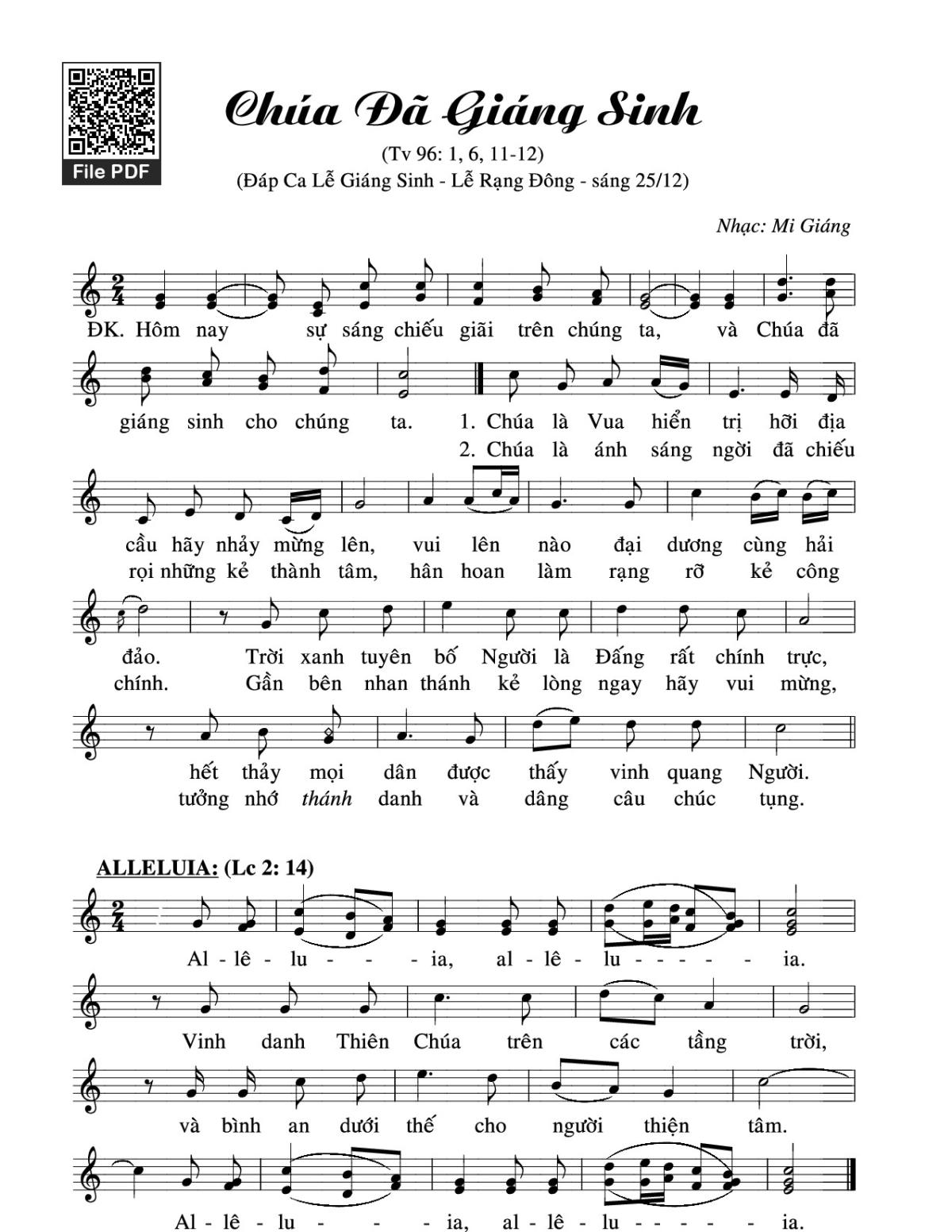 Điệp khúc: Hôm nay sự sáng chiếu giãi trên chúng ta, và Chúa đã giáng sinh cho chúng ta.