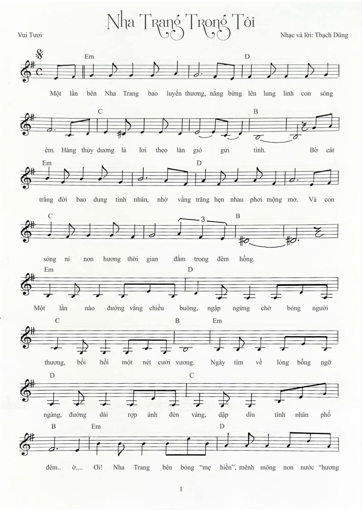 Thạch Dũng Một lần bên Nha Trang bao mến thương Nắng bừng lên lung linh con sóng êm [PDF] [Sheet] [Lyrics] [Mp4/Midi]