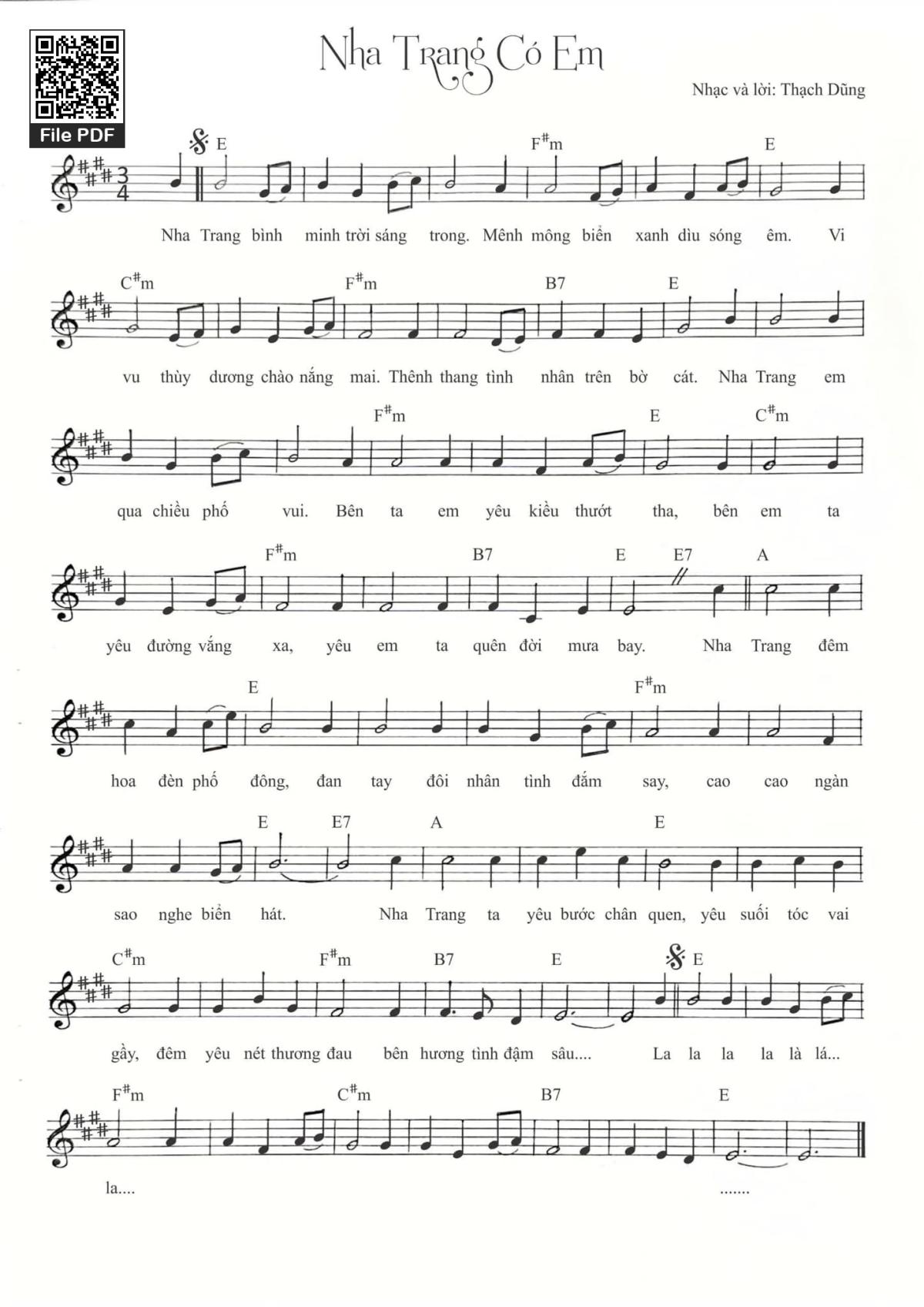 Thạch Dũng Nha Trang bình minh trời sáng trong Mênh mông biển xanh dịu sóng êm [PDF] [Sheet] [Lyrics] [Mp4/Midi]