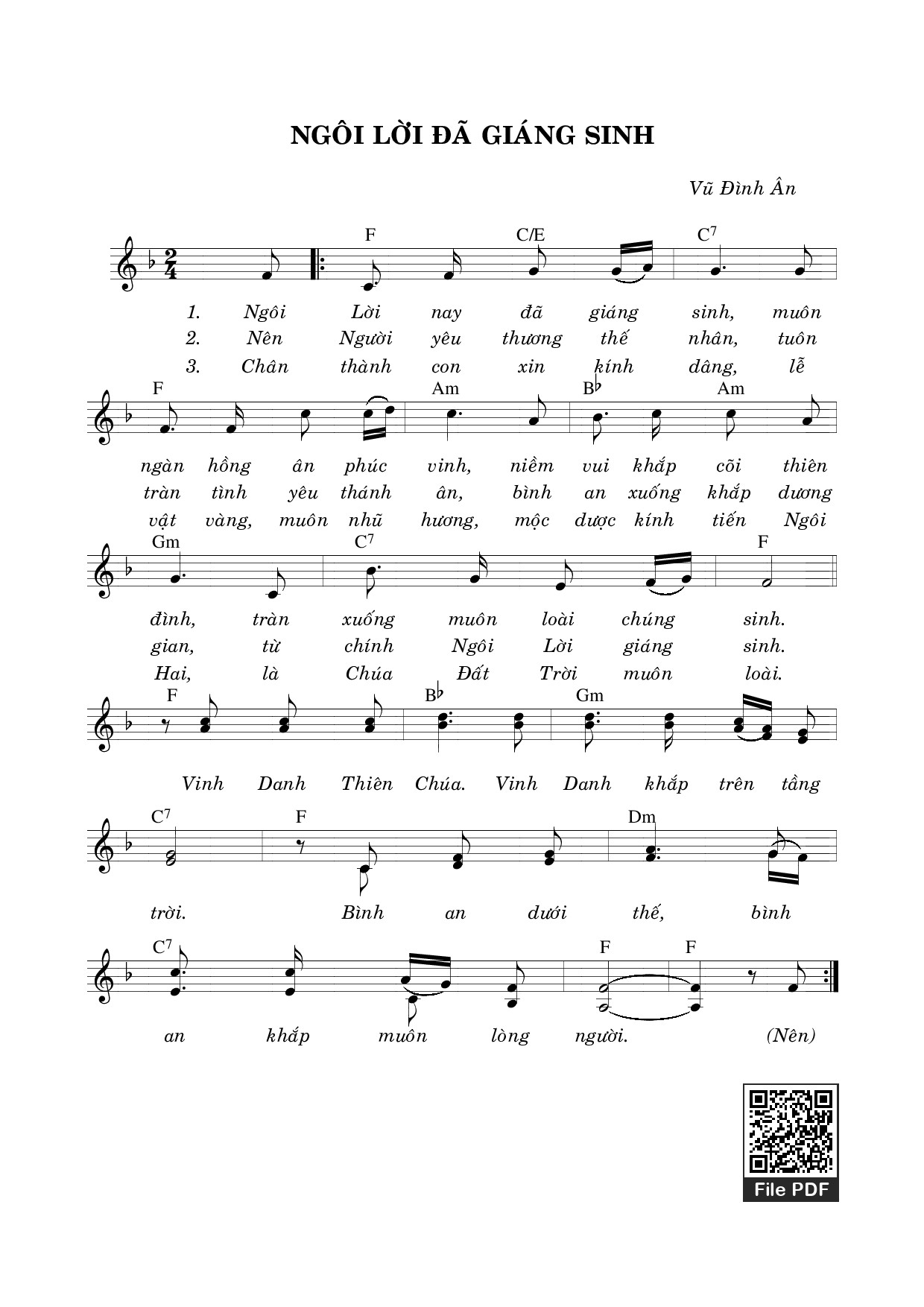Vũ Đình Ân Kết Lễ Mùa Giáng Sinh Ngôi Lời nay đã giáng sinh [PDF] [Sheet] [Lyrics] [Mp4/Midi]