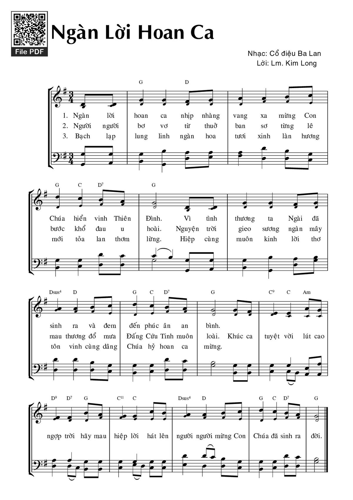 1) Ngàn lời hoan ca, nhịp nhàng vang xa mừng con Chúa hiển vinh Thiên Đình. Vì tình thương ta, Ngài đã sinh ra và đem đến phúc ân an bình.