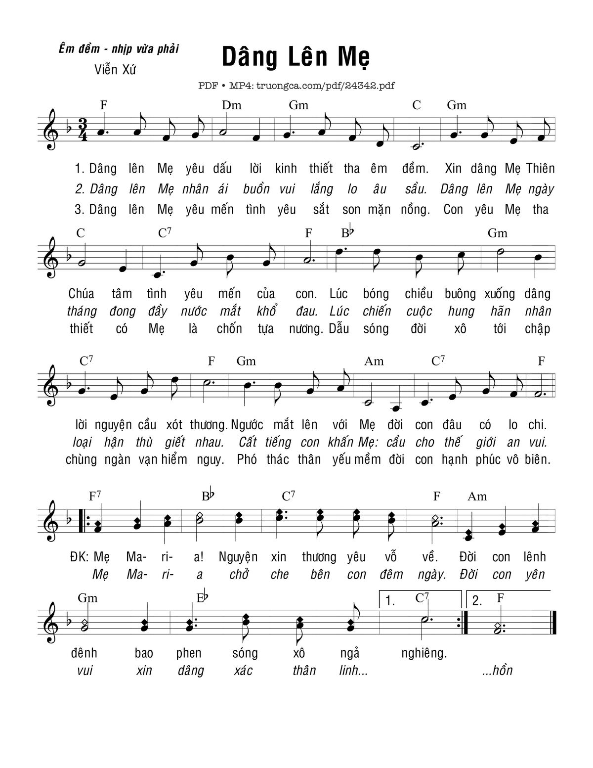 Sheet PDF with the same name Dâng Lên Mẹ: