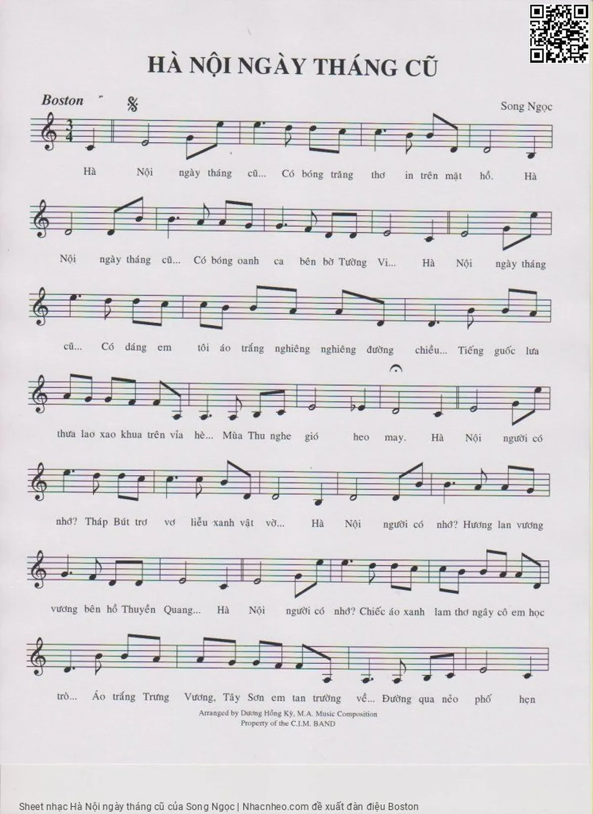 Song Ngọc Hà nội ngày tháng cũ có bóng trăng thơ in trên mặt hồ [PDF] [Sheet] [Lyrics] [Mp4/Midi]