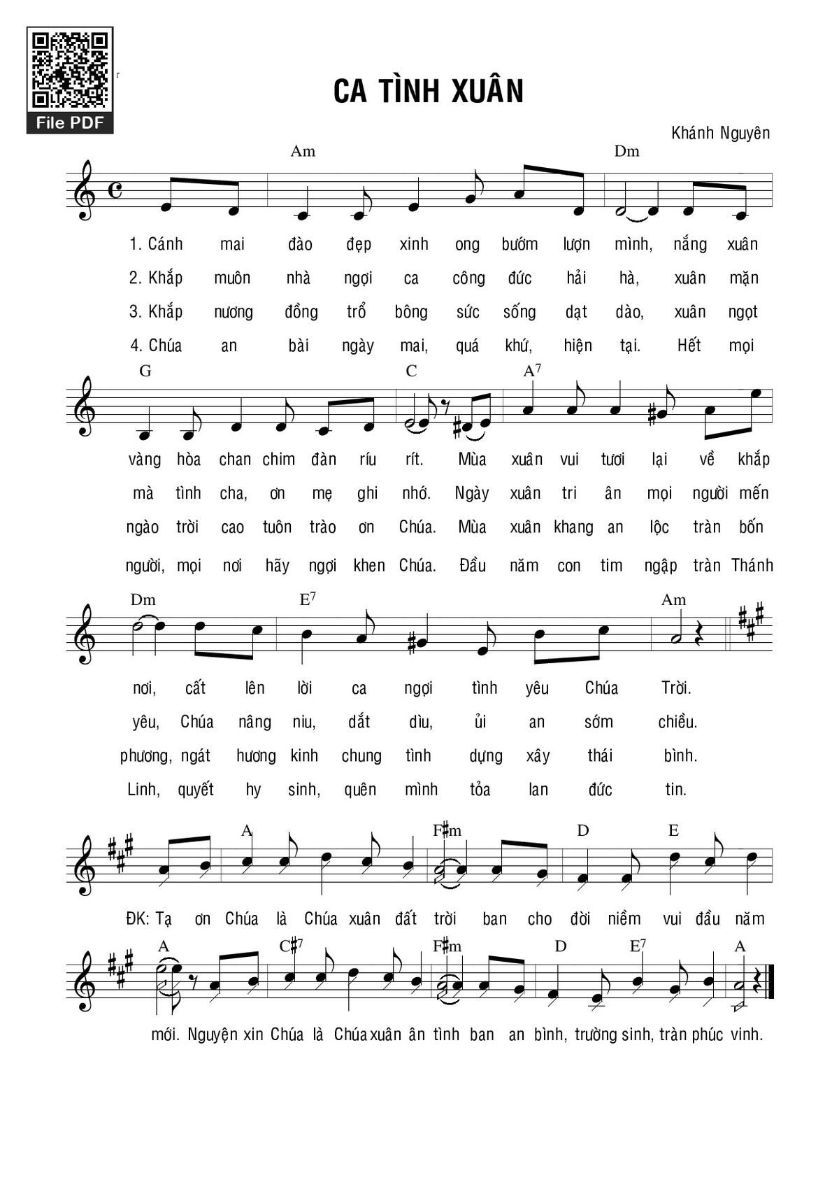 Sheet music Ca tình xuân by Khánh Nguyên and PDF file was posted here to support you to practice singing perfectly. Sheets with notes and chords are for reference only, for non-commercial purposes only, not involved with earning money by buying and selling. Copyright is belong to song writer/author and copyright owner. Truongca.com do not own any copyrighted content. You can download the high-quality PDF files which contain staffs by PDF link above.
