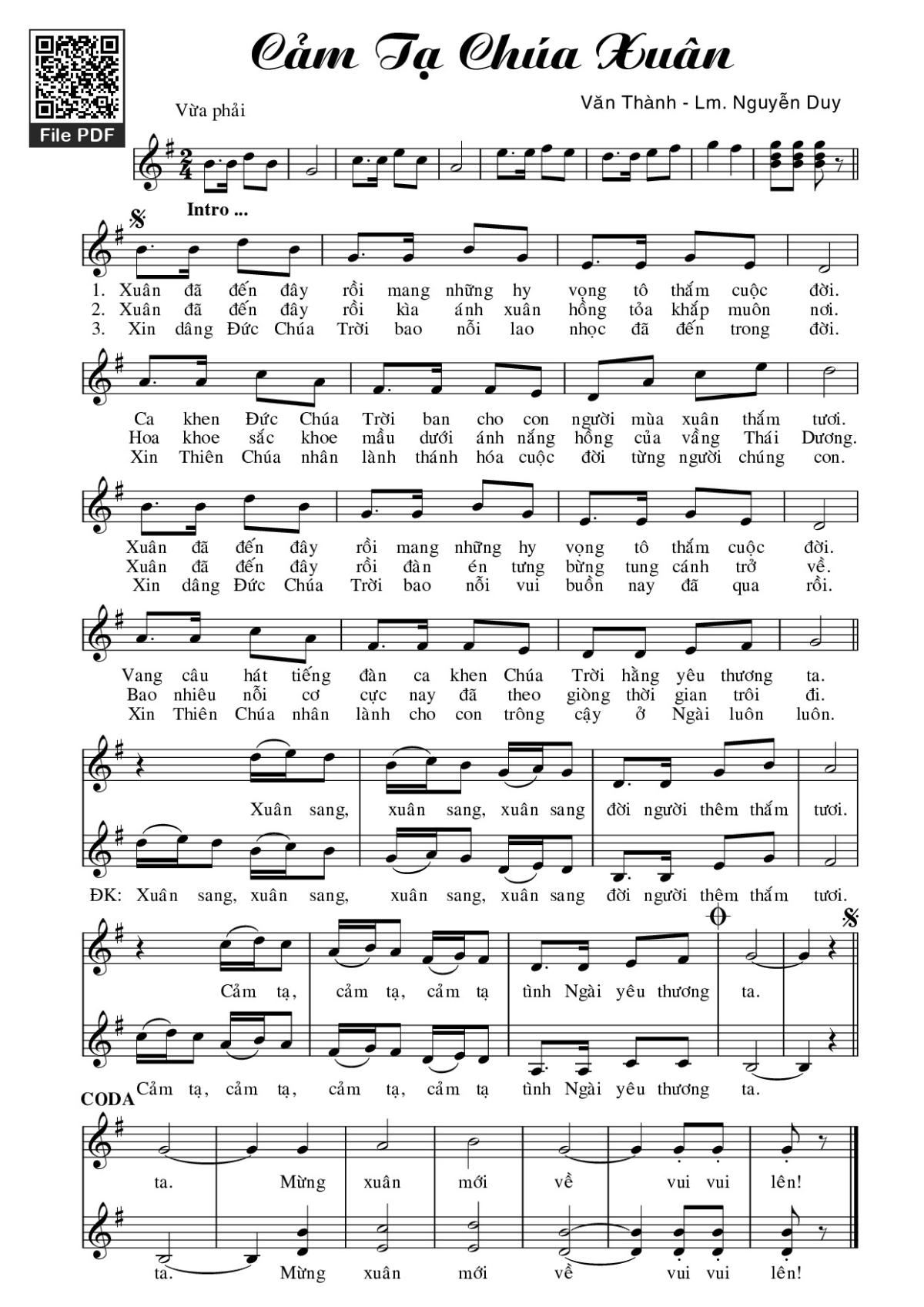Page 1 of Sheet music PDF Cảm tạ Chúa Xuân - Văn Thành