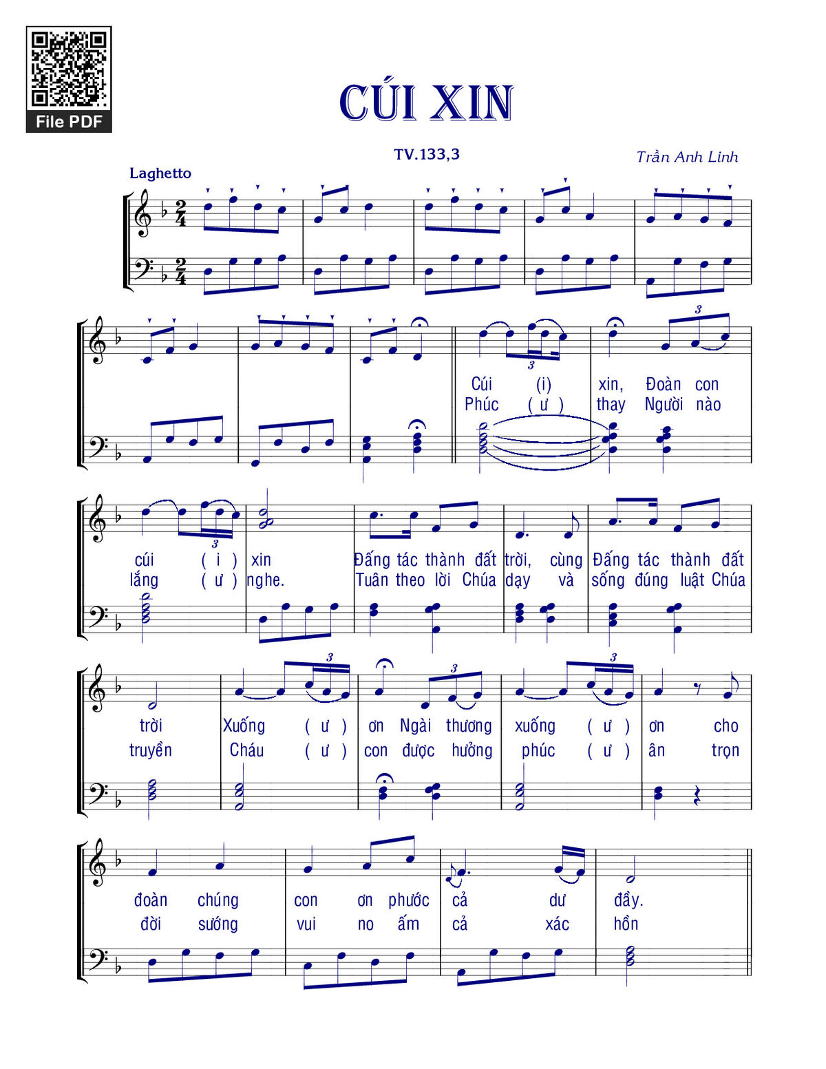 Page 1 of Sheet music PDF Cúi xin (Tv. 133) - Trần Anh Linh
