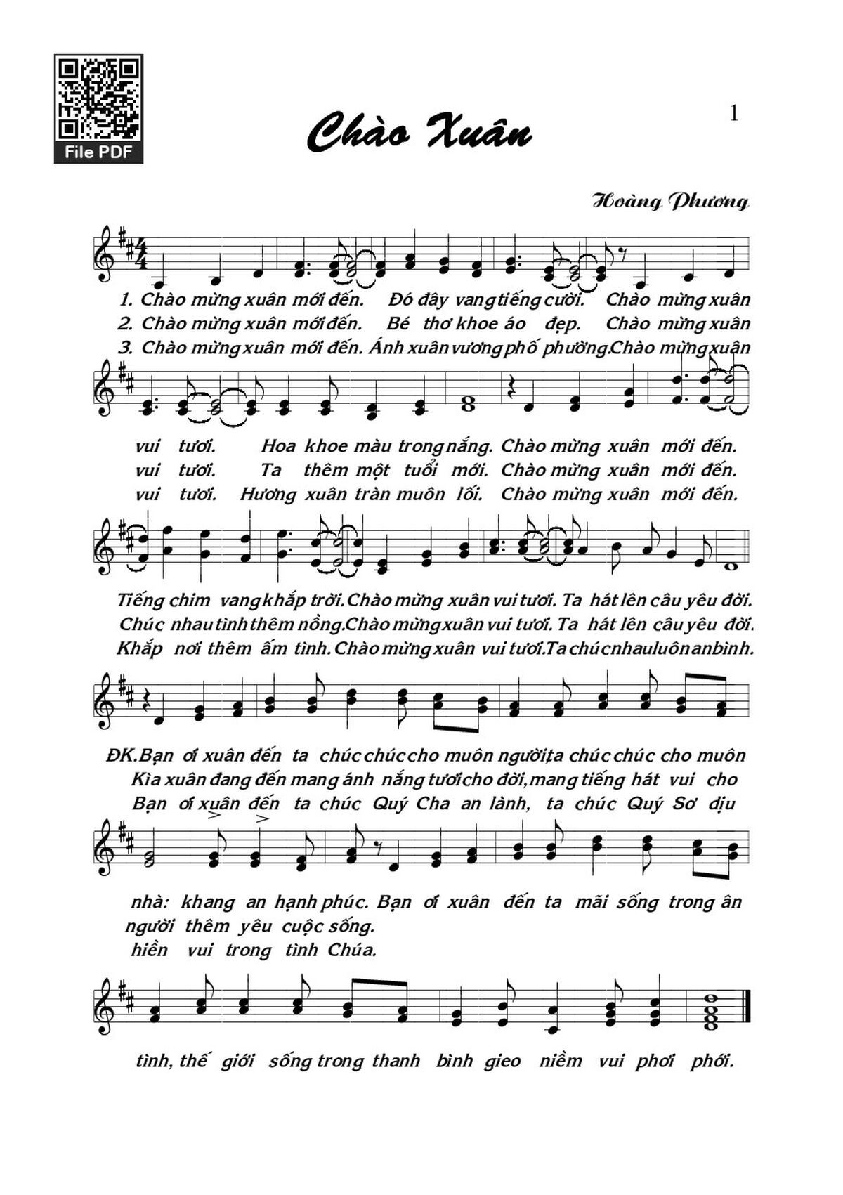 Page 1 of Sheet music PDF Chào xuân - Hoàng Phương