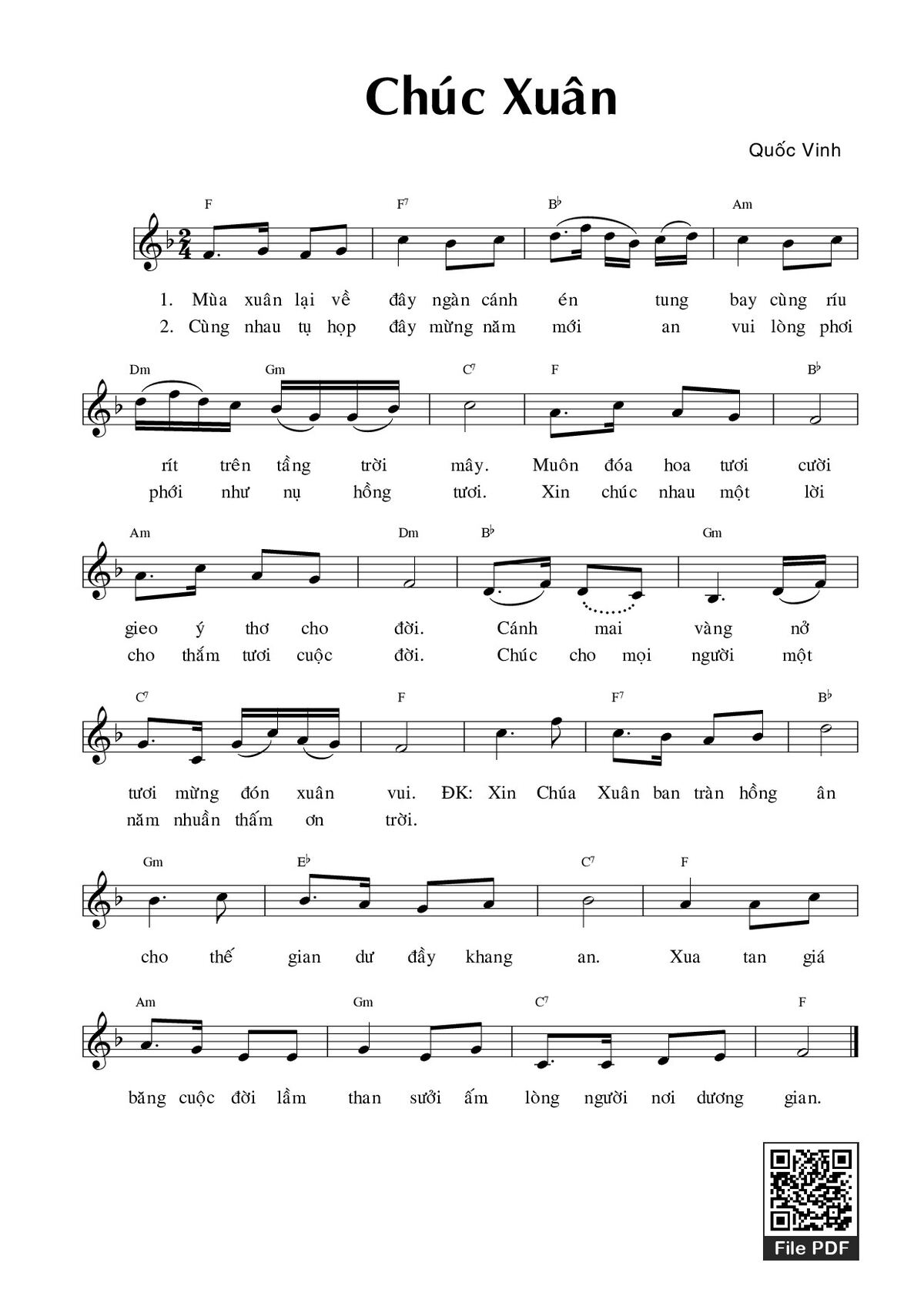 Sheet Chúc xuân PDF (Quốc Vinh), chords