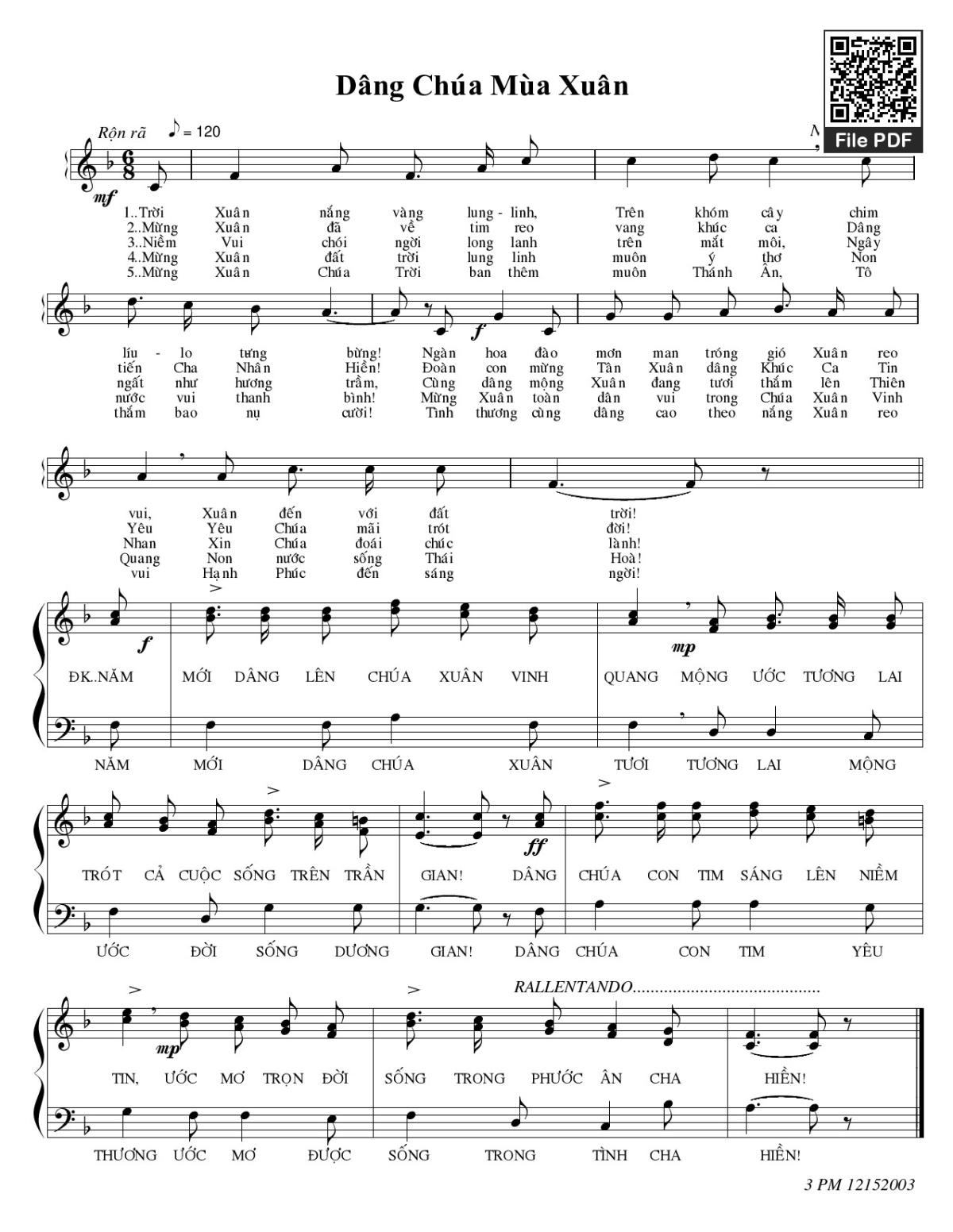 Page 1 of Sheet music PDF Dâng Chúa mùa xuân - Nguyên Kha