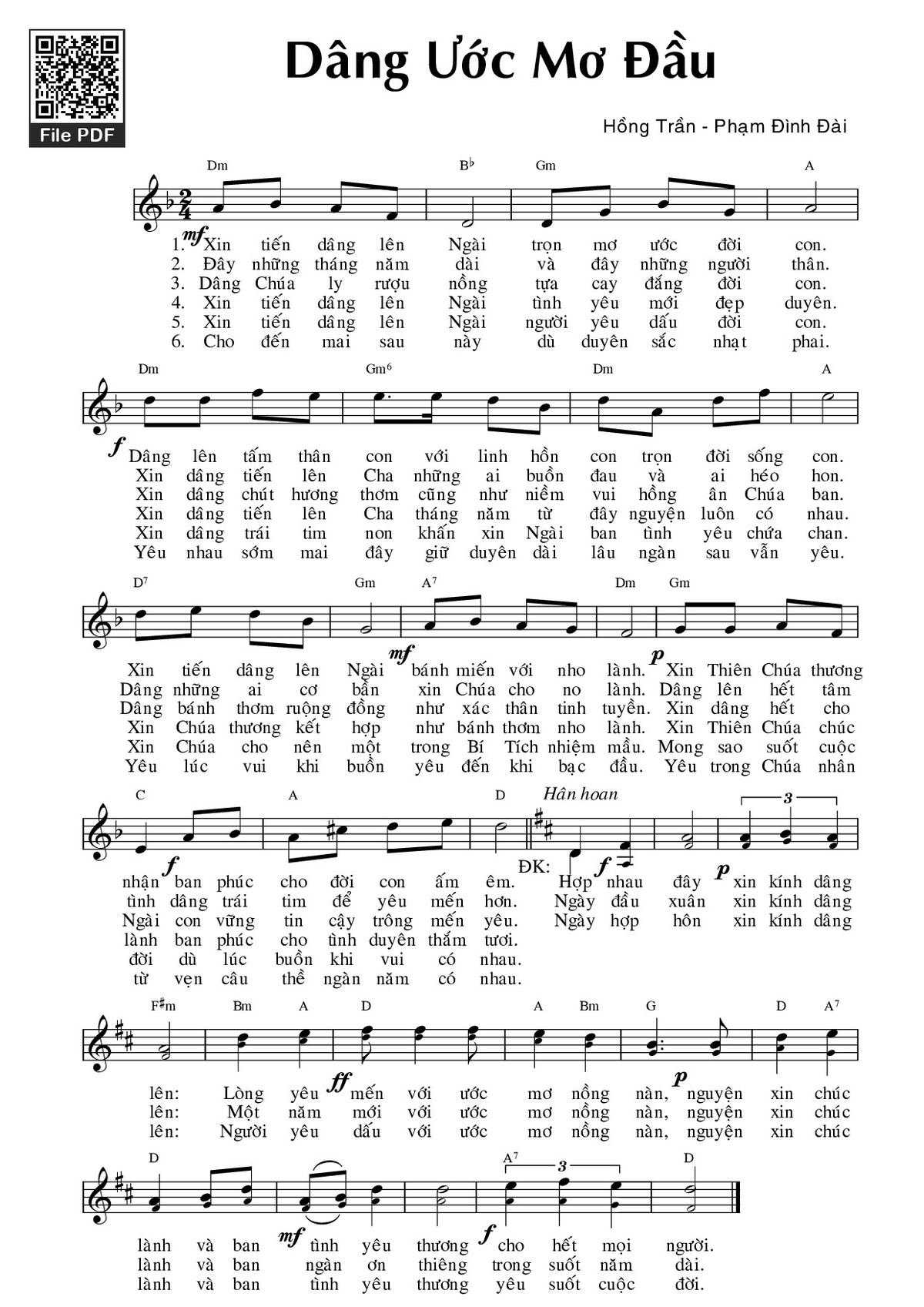 Page 1 of Sheet music PDF Dâng ước mơ đầu - Hồng Trần