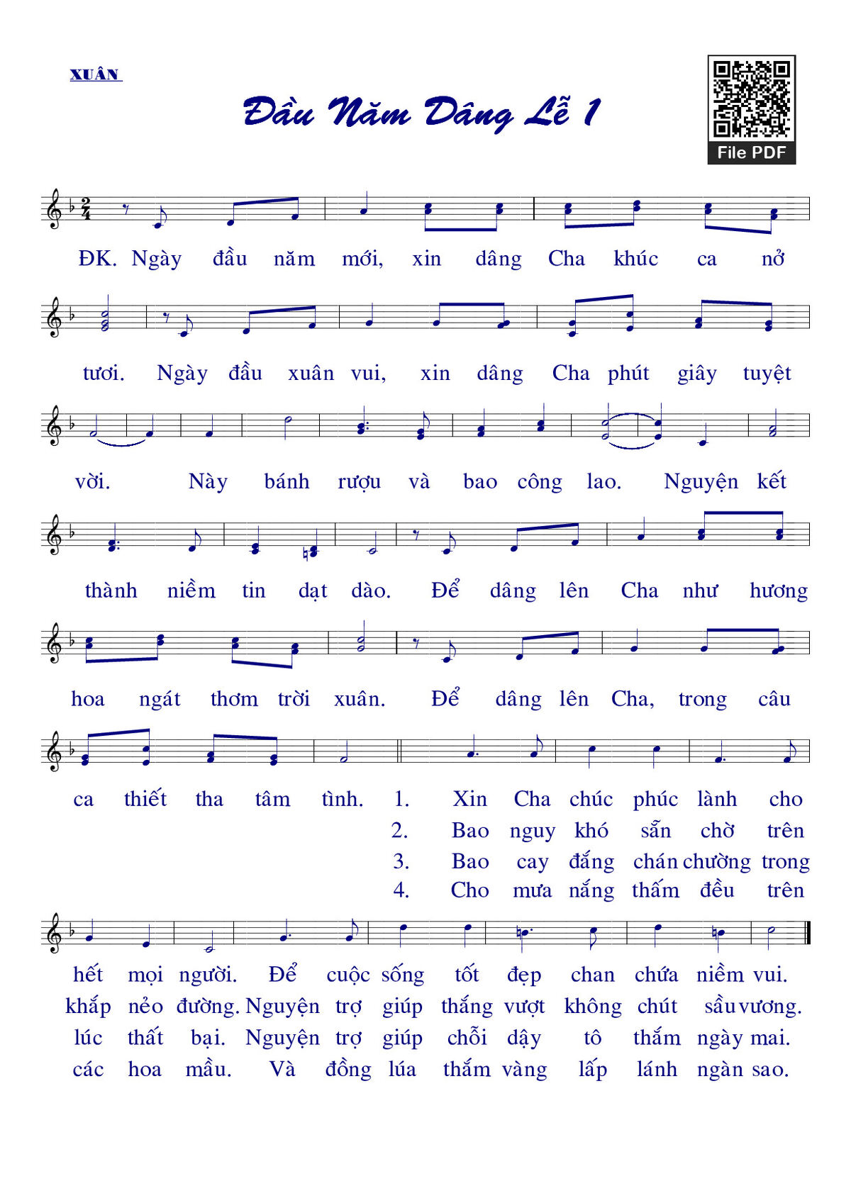 Sheet Đầu năm dâng lễ 1 PDF, chords