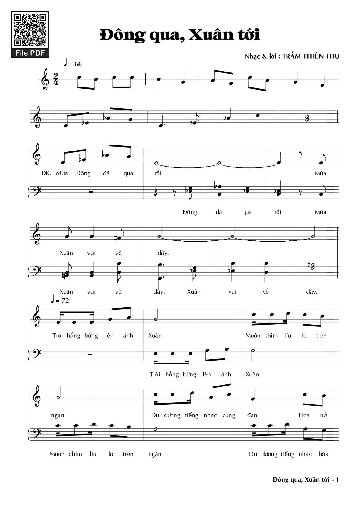 Page 1 of Sheet music PDF Đông qua xuân tới - Trầm Thiên Thu