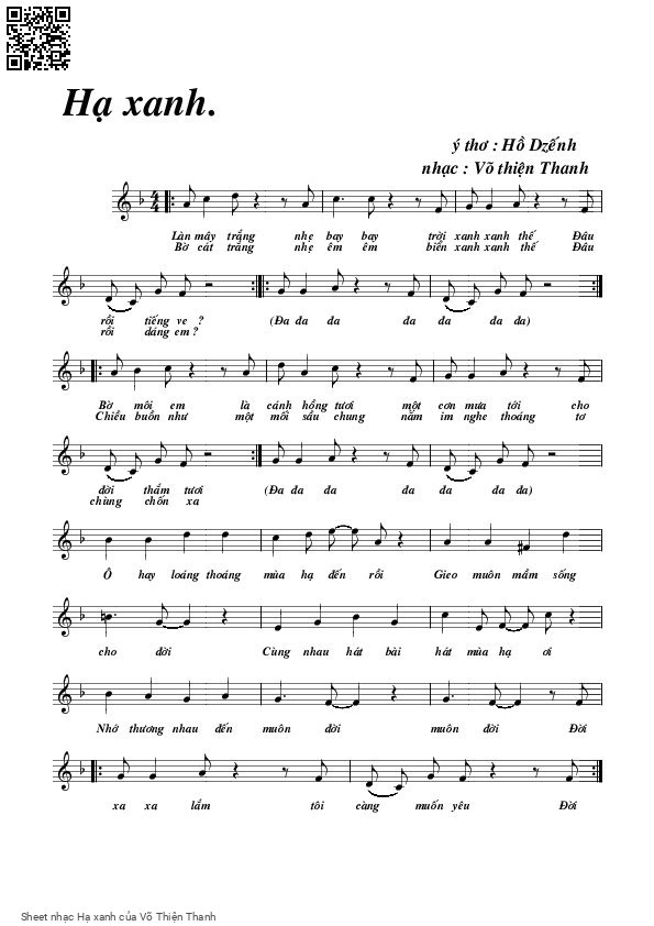 Transposition is the process of moving a song's melody and chords up or down in pitch by a constant interval. The direction of the transposition tool is indicated by a plus (+) sign for up and a minus (-) sign for down. Hover mouse over chords signs to see the chords chart of Hạ xanh song.