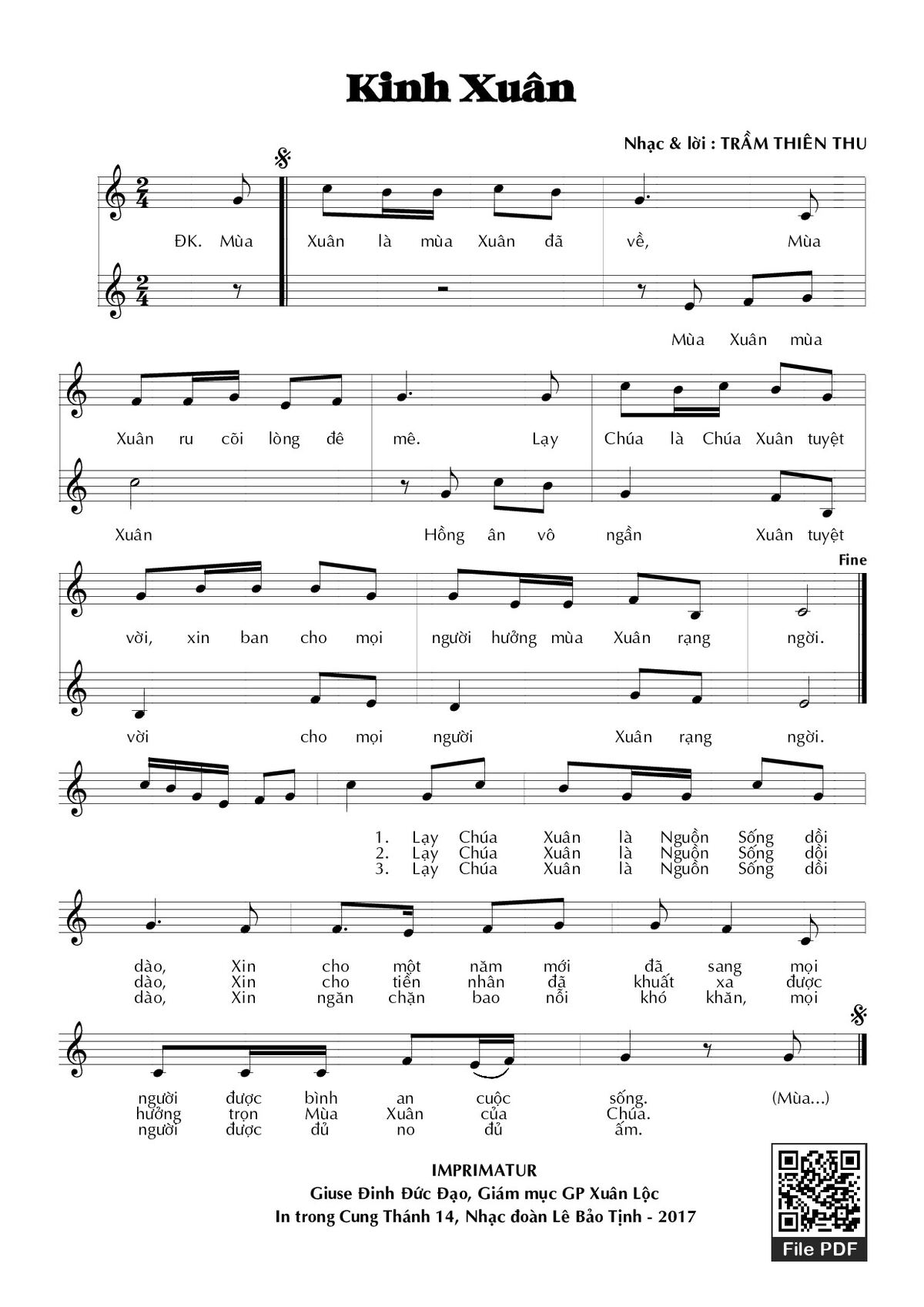 Page 1 of Sheet music PDF Kinh xuân - Trầm Thiên Thu
