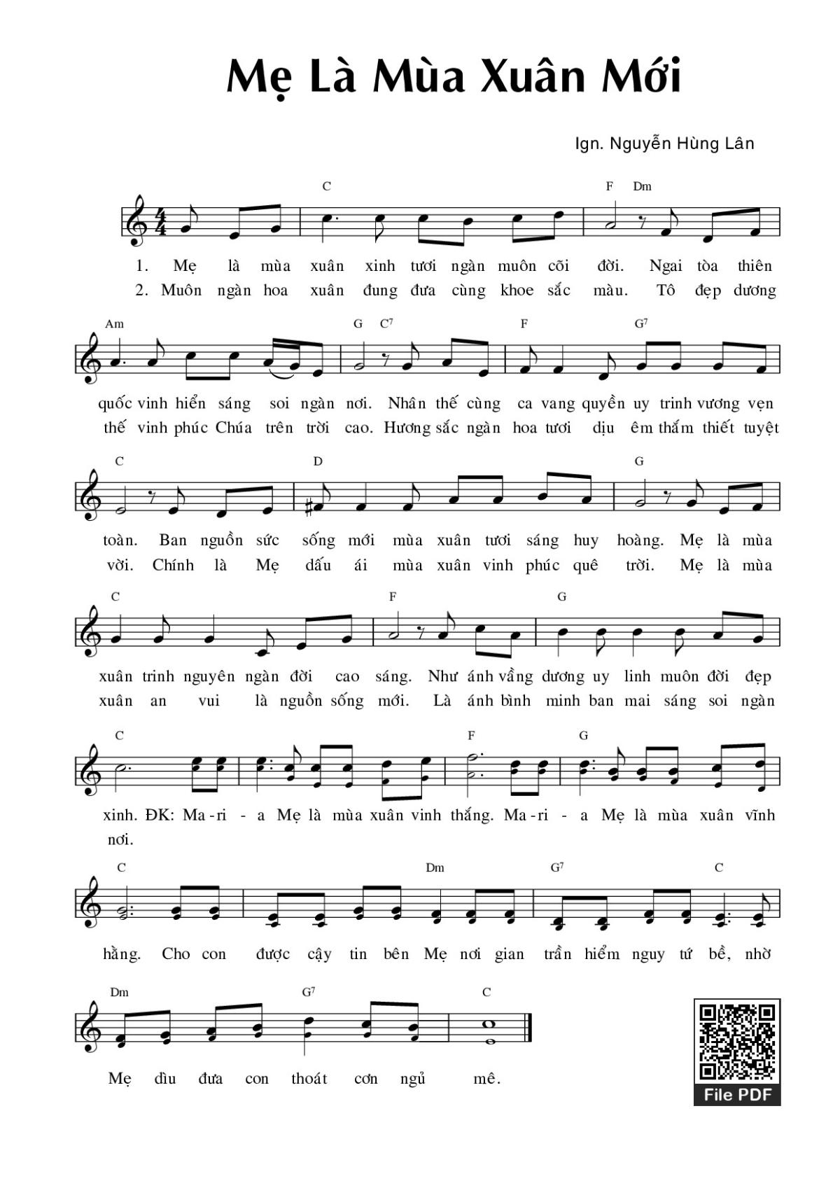 Page 1 of Sheet music PDF Mẹ là mùa xuân mới - Nguyễn Hùng Lân