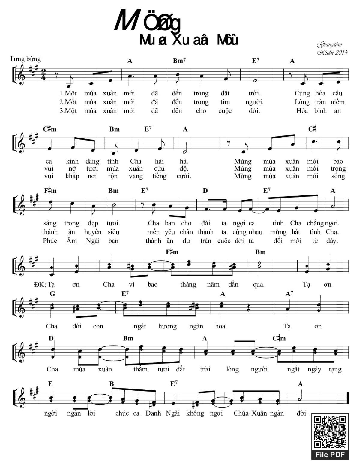 Sheet Mừng mùa xuân mới PDF (Giangtâm), chords