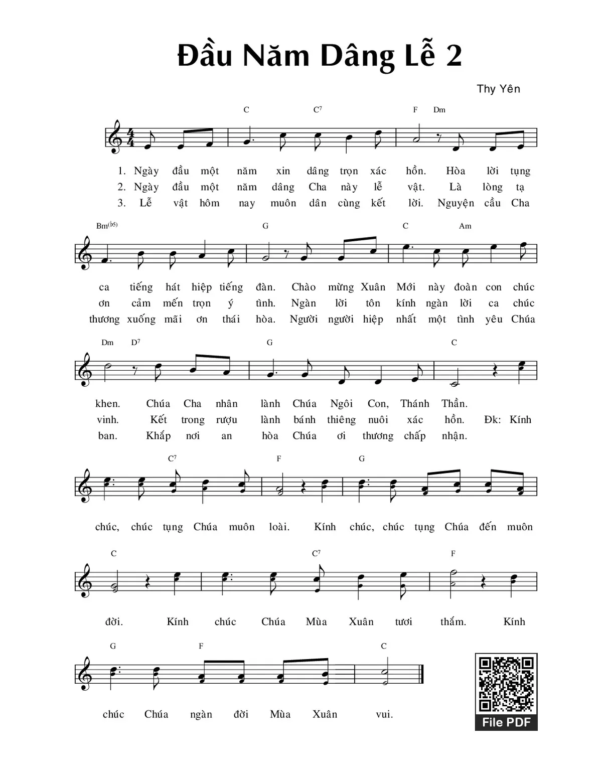 Sheet music Ngày đầu một năm by Thy Yên and PDF file was posted here to support you to practice singing perfectly. Sheets with notes and chords are for reference only, for non-commercial purposes only, not involved with earning money by buying and selling. Copyright is belong to song writer/author and copyright owner. Truongca.com do not own any copyrighted content. You can download the high-quality PDF files which contain staffs by PDF link above.