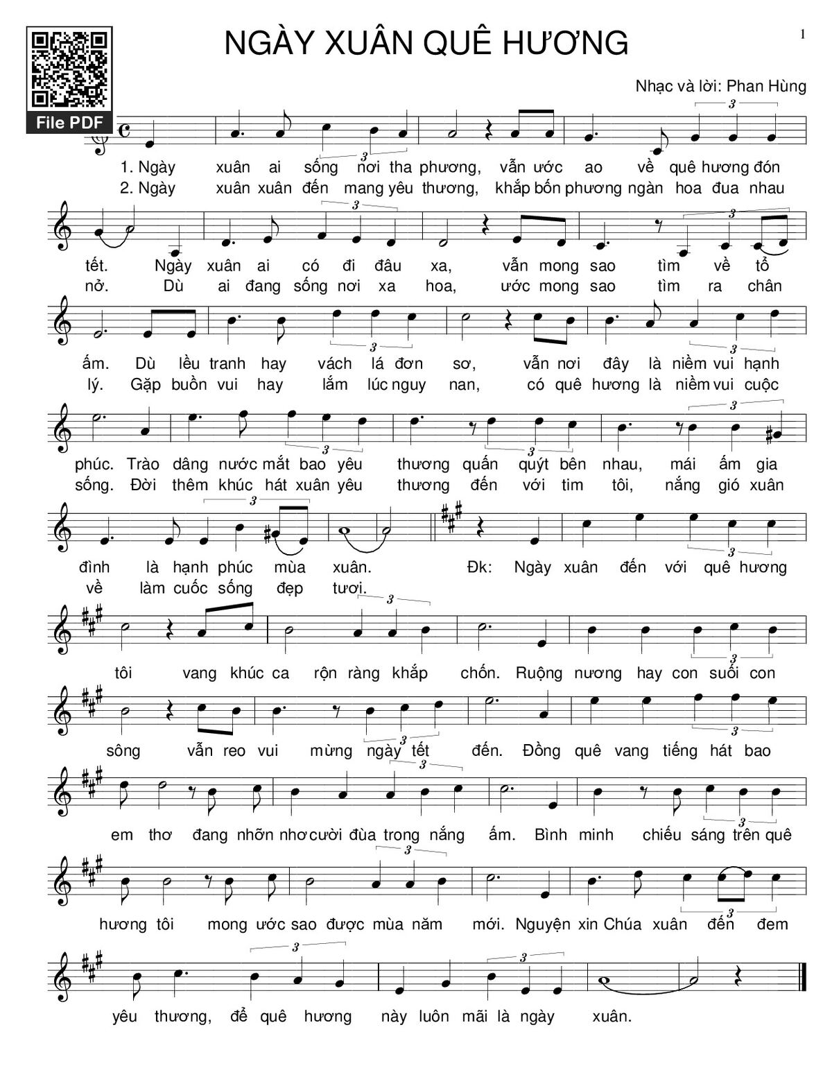 Page 1 of Sheet music PDF Ngày xuân quê hương - Phan Hùng