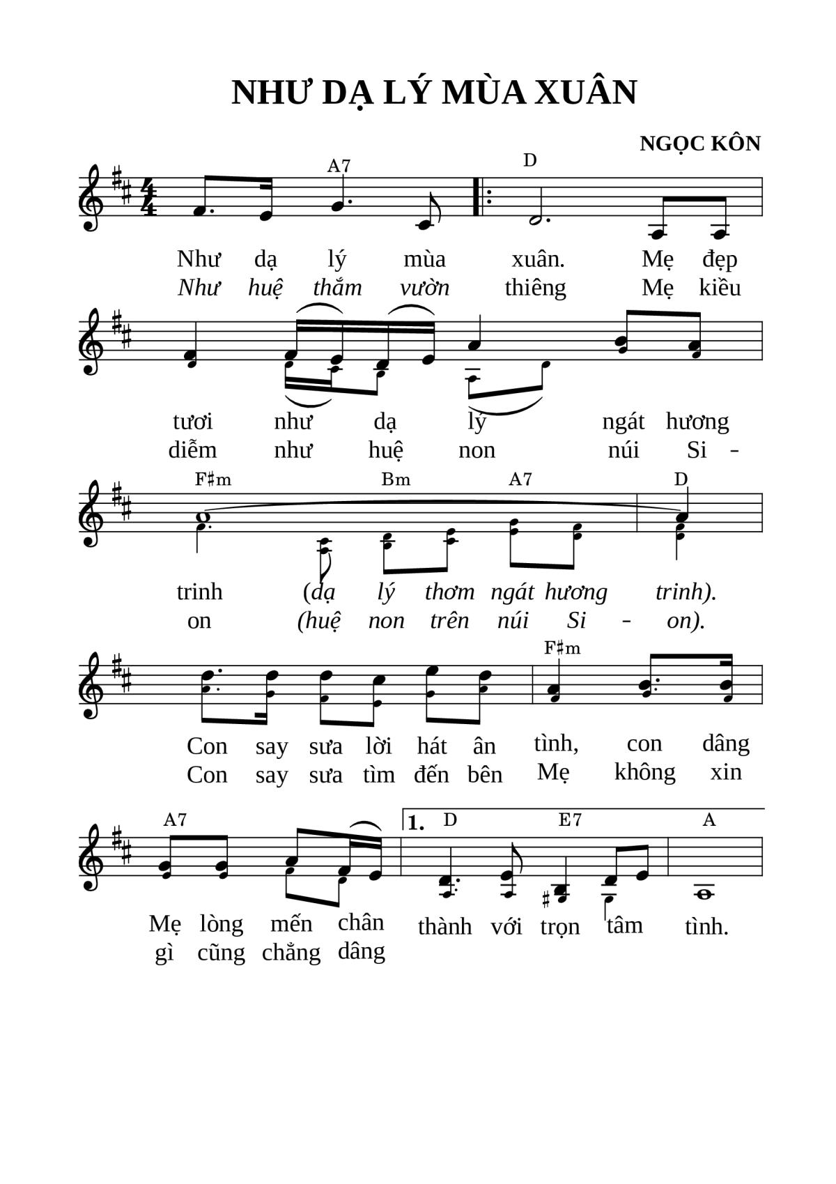 The Videos/audios Như dạ lý mùa xuân by Ngọc Kôn were embed from Youtube, Musescore or the other 3rd links. Videos are subject to 3rd's copyright control and may be removed by YouTube's copyright rules and 3rd's policies or maybe included advertisements. If you cannot access to these songs, this mean that have been removed.