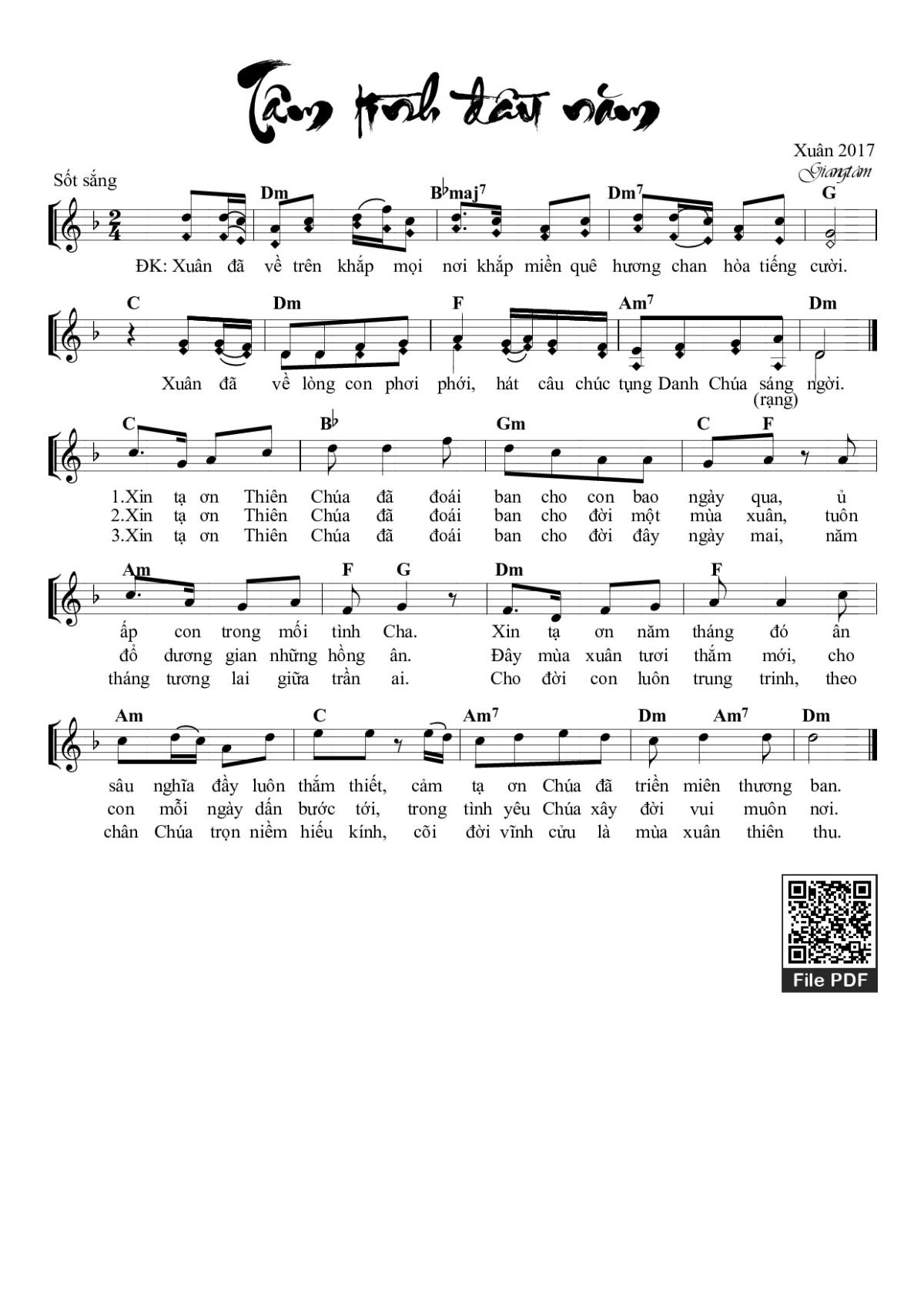 Transposition is the process of moving a song's melody and chords up or down in pitch by a constant interval. The direction of the transposition tool is indicated by a plus (+) sign for up and a minus (-) sign for down. Hover mouse over chords signs to see the chords chart of Tâm tình đầu năm – song.