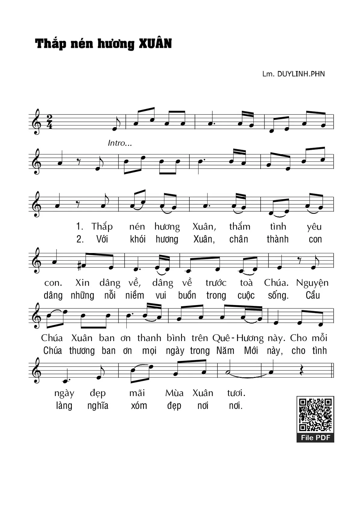 Page 1 of Sheet music PDF Thắp nén hương xuân - Duy Linh PHN