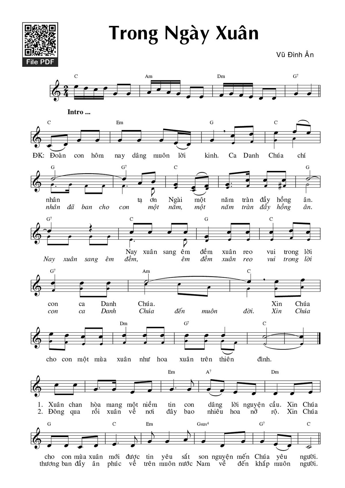 Page 1 of Sheet music PDF Trong ngày xuân - Vũ Đình Ân