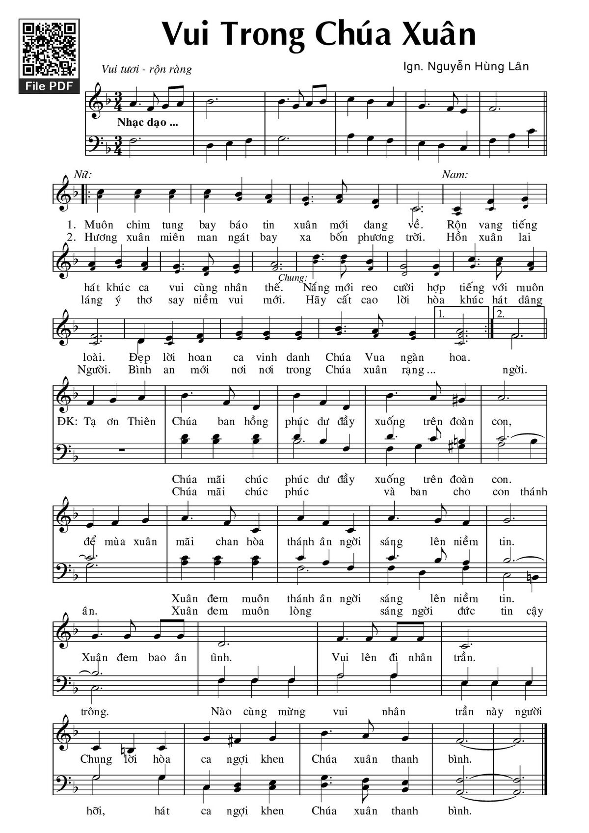 Page 1 of Sheet music PDF Vui trong Chúa Xuân - Nguyễn Hùng Lân