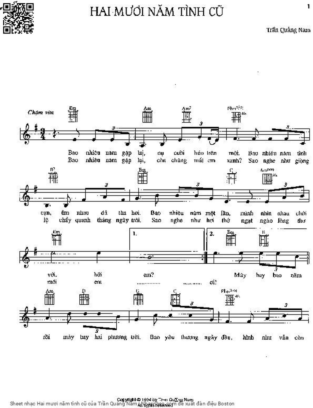 Trần Quảng Nam Bao nhiêu năm gặp lại nụ cười héo trên môi [PDF] [Sheet] [Lyrics] [Mp4/Midi]