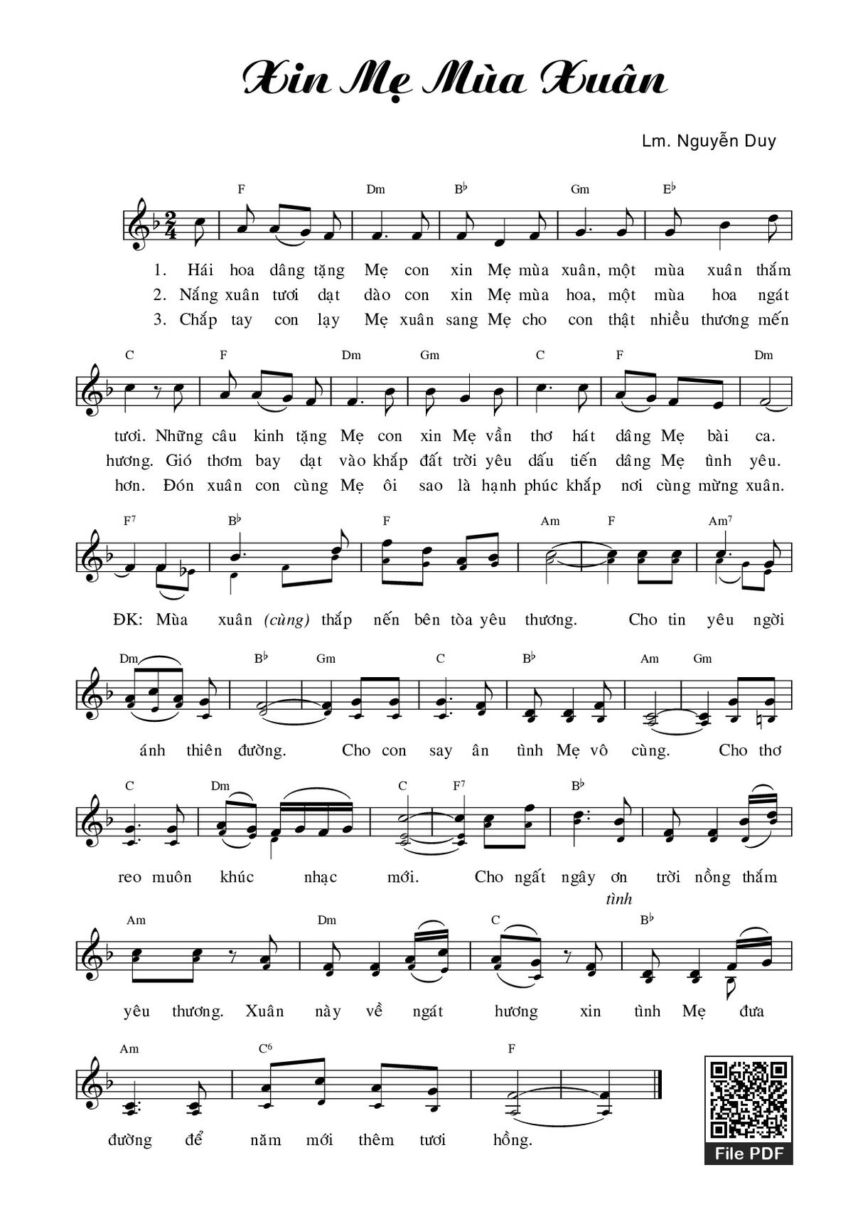 Sheet Xin Mẹ mùa xuân PDF (Nguyễn Duy), chords