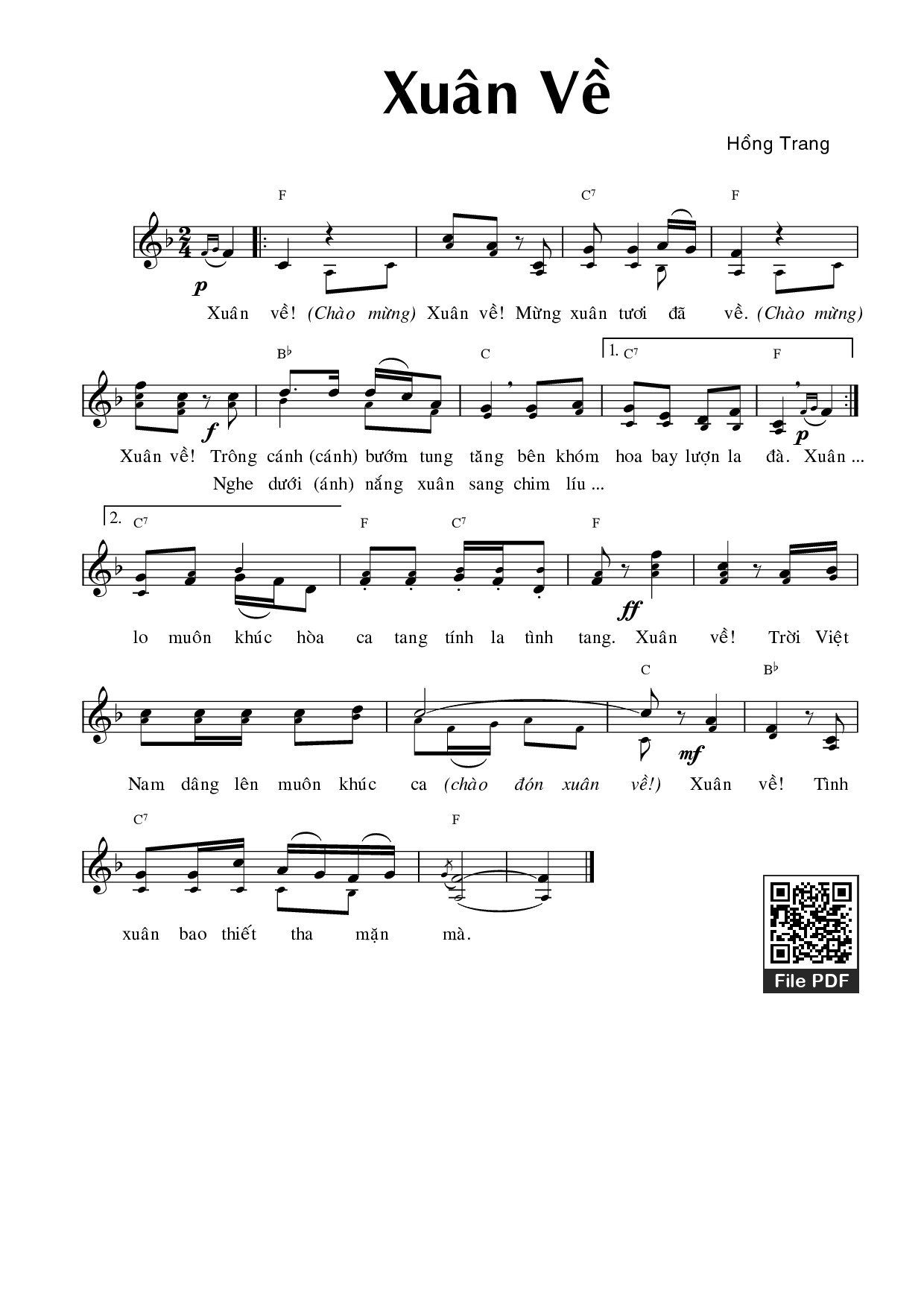 Page 1 of Sheet music PDF Xuân về - Hồng Trang