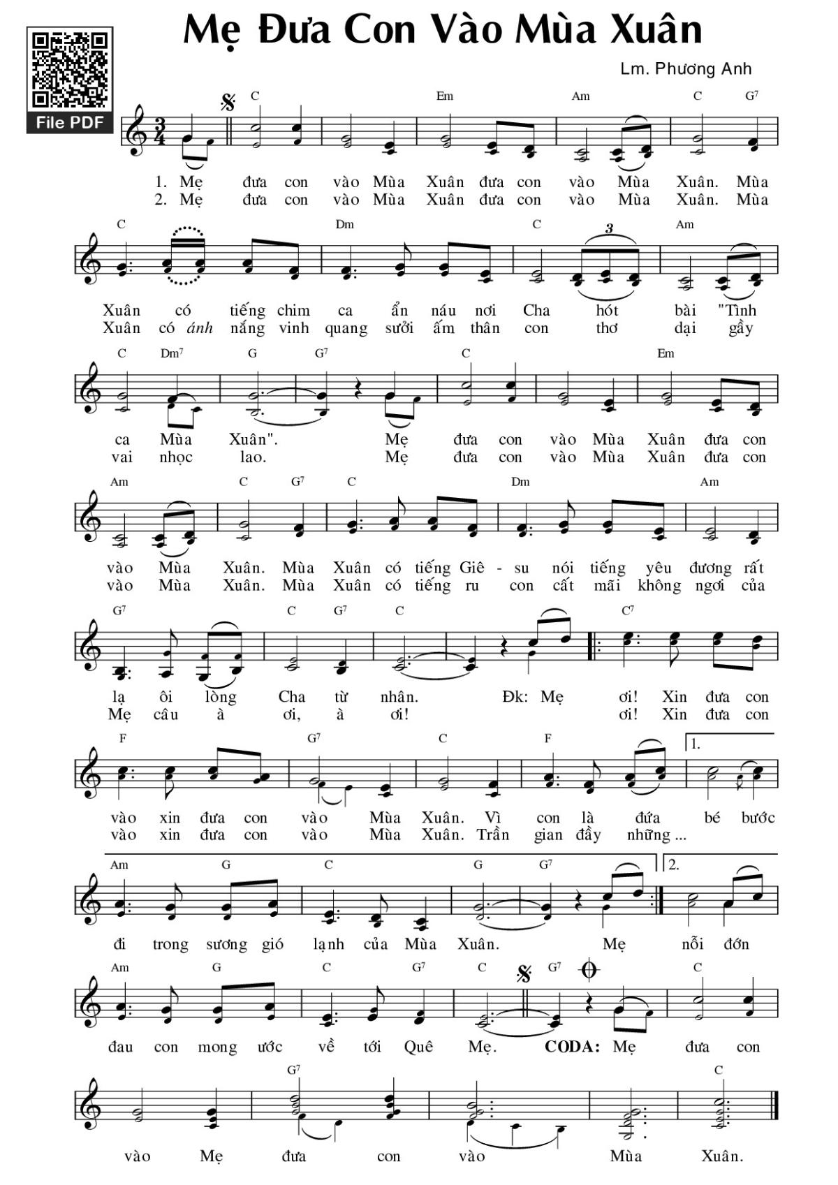 Phương Anh Mẹ đưa con vào mùa Xuân đưa con vào mùa Xuân [PDF] [Sheet] [Lyrics] [Mp4/Midi]